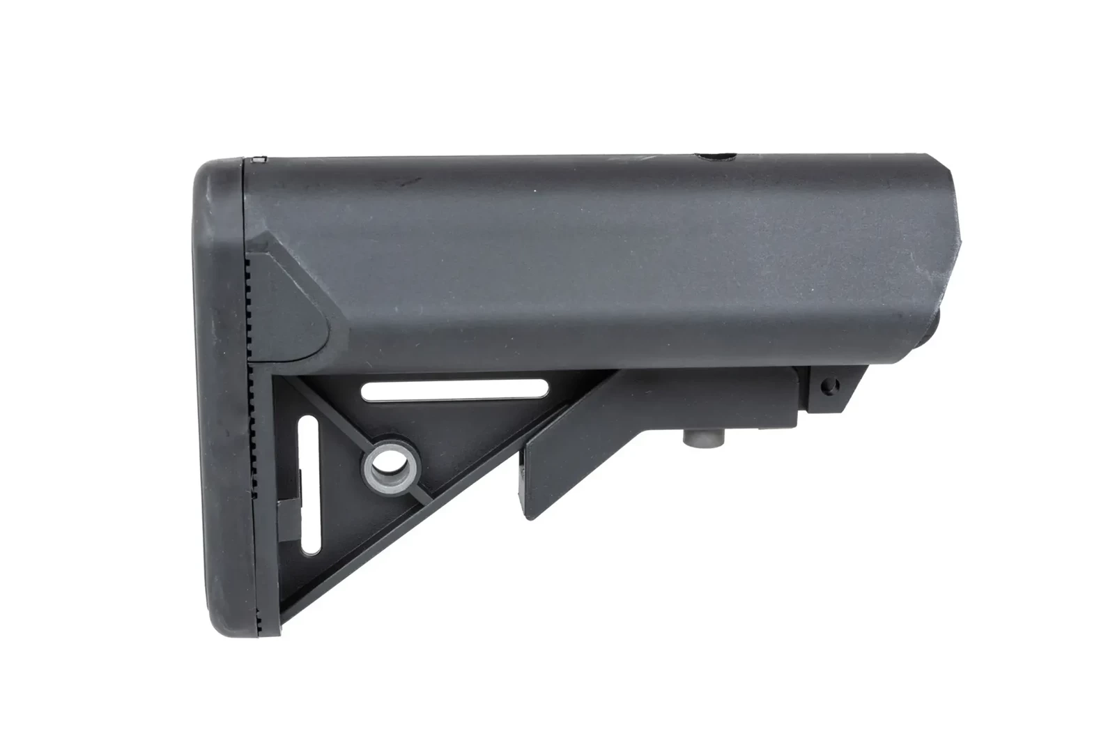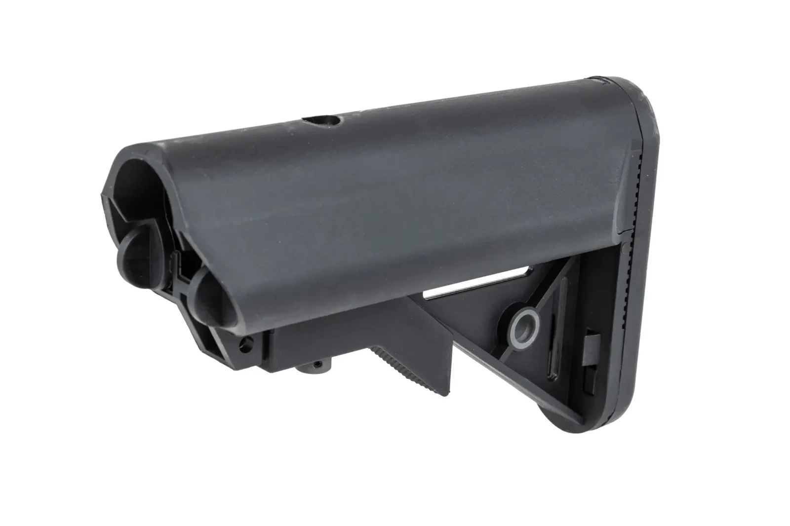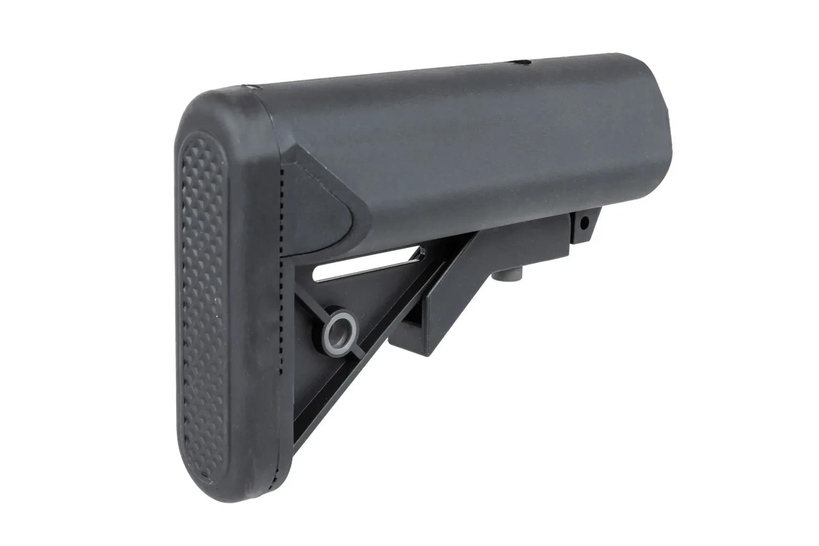Wykonana z wytrzymałego tworzywa sztucznego regulowana kolba taktyczna przeznaczona do montażu na standardowych prowadnicach kolb spotykanych w replikach karabinków typu M4/M16. Konstrukcja kolby pozwoli na zastosowanie 3-dzielnych akumulatorów.