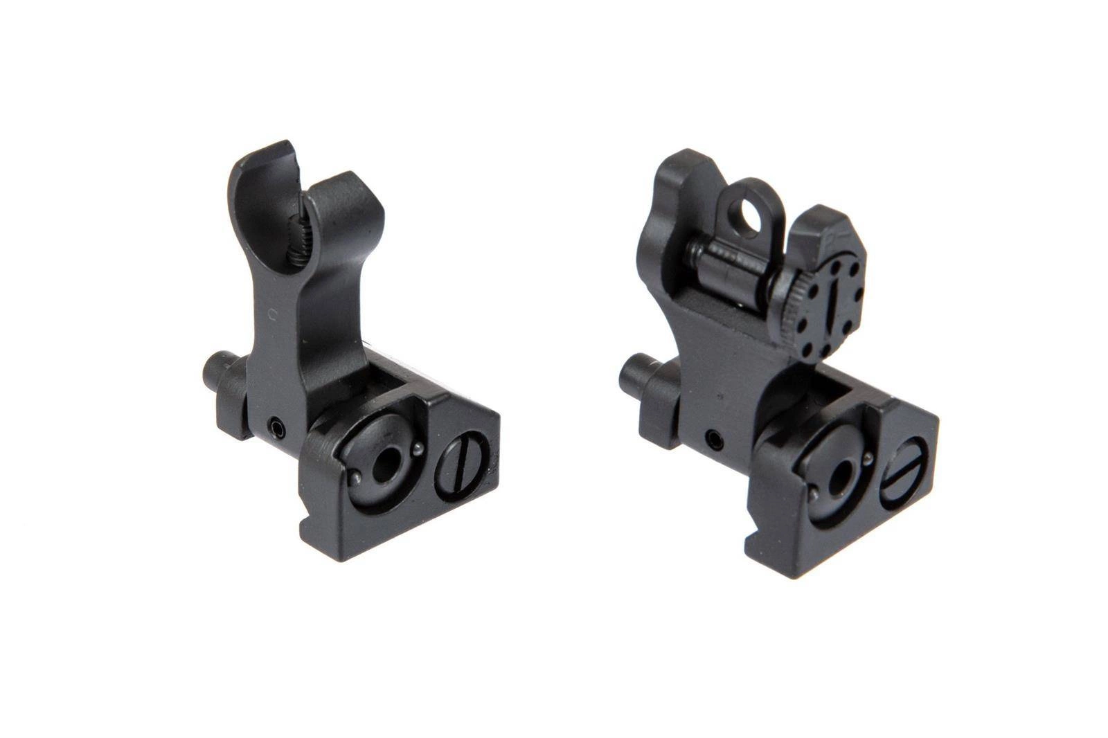 Zestaw składanych przyrządów celowniczych wykonano z wytrzymałego metalu. Szczerbinka posiada regulację na boki, muszka zaś regulację góra-dół. Przyrządy zamontować można na szynie RIS 22mm.