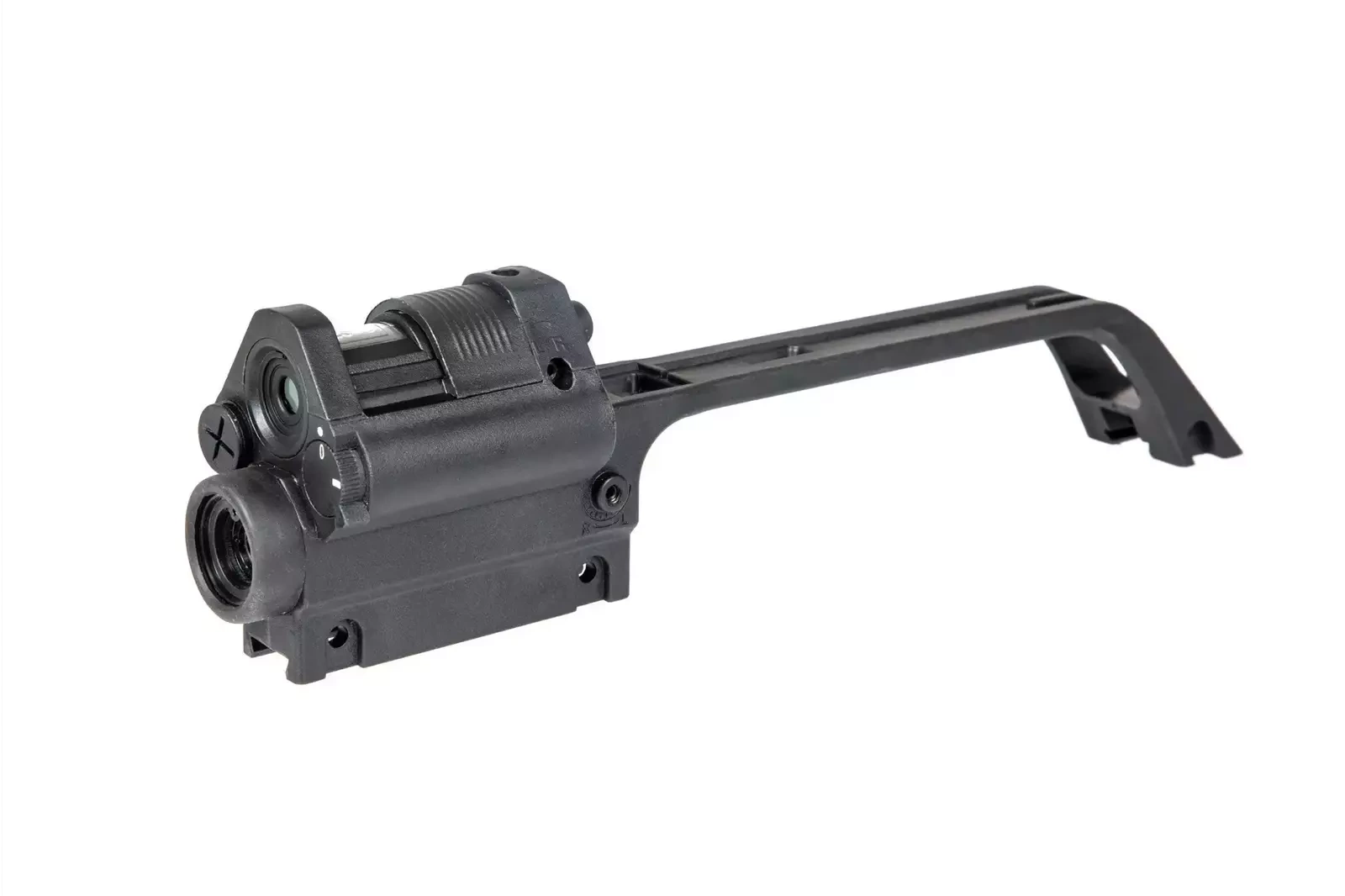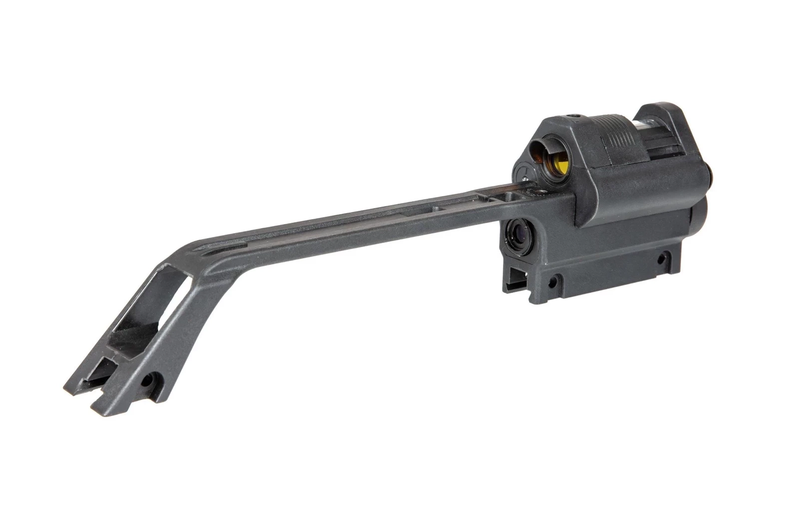 Wykonany z wytrzymałego tworzywa sztucznego zespół celowniczy złożony z lunety o stałym powiększeniu 1,5x oraz kolimatora wkomponowany w chwyt transportowy. Moduł przeznaczony jest do replik typu G36. Zasilanie stanowią dwie baterie LR1 (w zestawie). W zestawie znajdują się wszystkie potrzebne do montażu części i akcesoria.