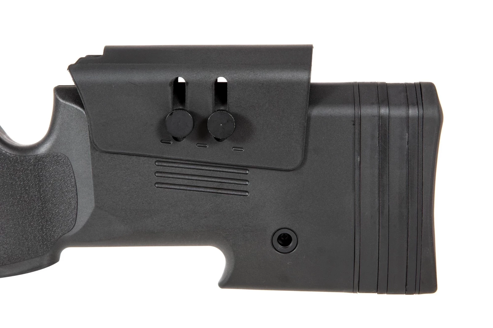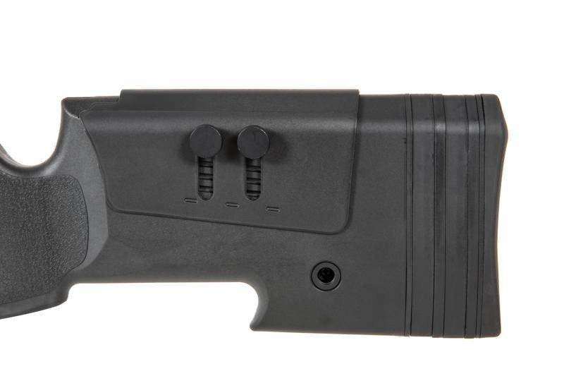 Replikę snajperską Specna Arms wyposażono w prosty i niezawodny mechanizm czterotaktowy, który należy przeładować przed oddaniem każdego strzału. Replika wykonana została z metalu oraz wzmocnionego tworzywa sztucznego. Metalowy jest tu cały zespół lufy zewnętrznej wraz z komorą zamkową, spustem i rączką przeładowania, a także szyny akcesoryjne RIS / Picatinny i wszystkie elementy montażowe, takie jak śruby. Łoże z kolbą, bakę policzkową, stopkę kolby i magazynek wykonano z solidnego tworzywa sztucznego. Sama stopka kolby zakończona została wygodną, gumową nakładką, jej grubość można regulować dzięki kompletowi wymiennych nakładek. W połączeniu z regulowaną baką policzkową daje to możliwość dopasowania kolby do preferencji strzelca.