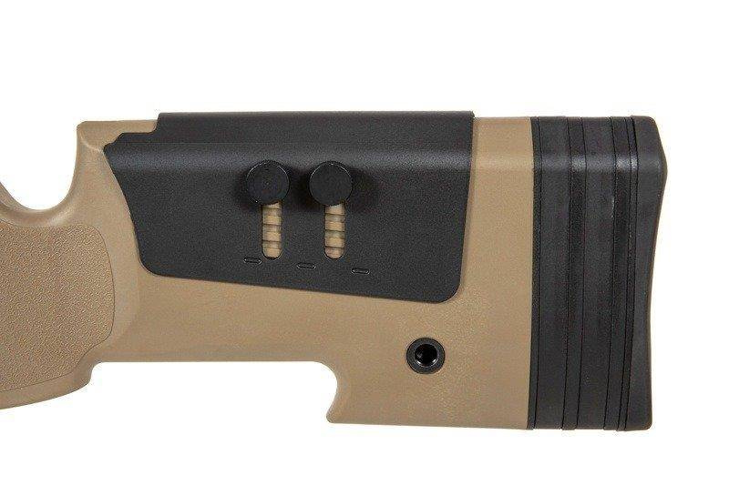 Replikę snajperską Specna Arms wyposażono w prosty i niezawodny mechanizm czterotaktowy, który należy przeładować przed oddaniem każdego strzału. Replika wykonana została z metalu oraz wzmocnionego tworzywa sztucznego. Metalowy jest tu cały zespół lufy zewnętrznej wraz z komorą zamkową, spustem i rączką przeładowania, a także szyny akcesoryjne RIS / Picatinny i wszystkie elementy montażowe, takie jak śruby. Łoże z kolbą, bakę policzkową, stopkę kolby i magazynek wykonano z solidnego tworzywa sztucznego. Sama stopka kolby zakończona została wygodną, gumową nakładką, jej grubość można regulować dzięki kompletowi wymiennych nakładek. W połączeniu z regulowaną baką policzkową daje to możliwość dopasowania kolby do preferencji strzelca.