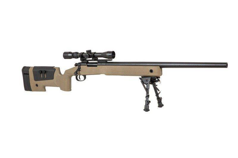 Replika karabinu wyborowego SA-S02 CORE™ z lunetą i dwójnogiem - tan