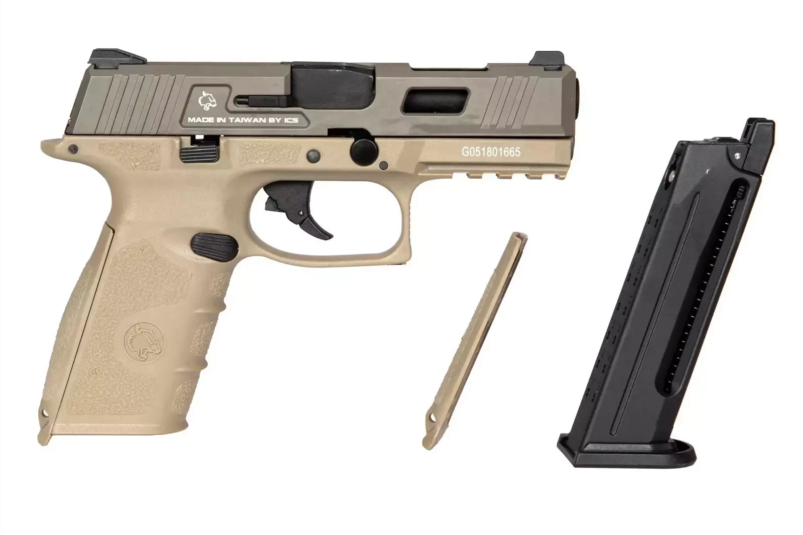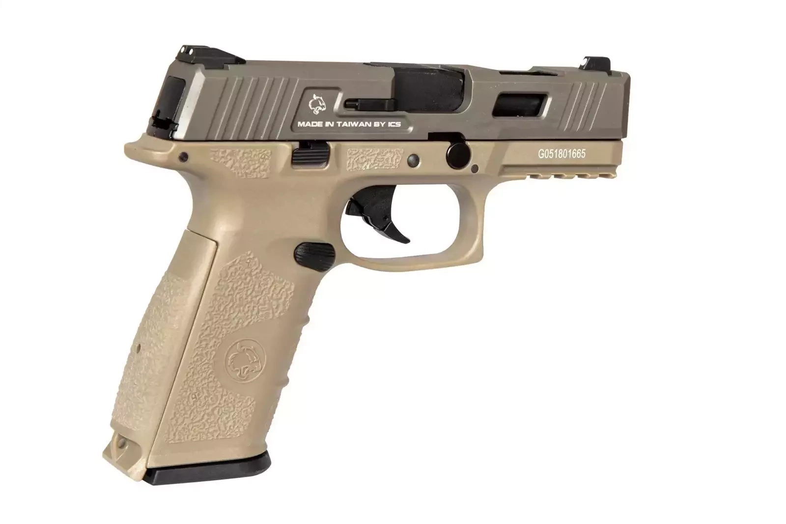 Jak widać już na pierwszy rzut oka, producent postanowił zaczerpnąć najlepsze cechy ze znanych i sprawdzonych modeli dostępnych na rynku i stworzyć replikę bezkompromisową, uniwersalną i wygodną dla jak najszerszego grona użytkowników. Efektem jest praktycznie całkowite przystosowanie pistoletu dla zarówno prawo jak i lewo ręcznych strzelców. Możemy to dostrzec w elementach takich jak obustronny zwalniacz zamka i magazynka czy bezpiecznik umieszczony w 2-częściowym języku spustowym.