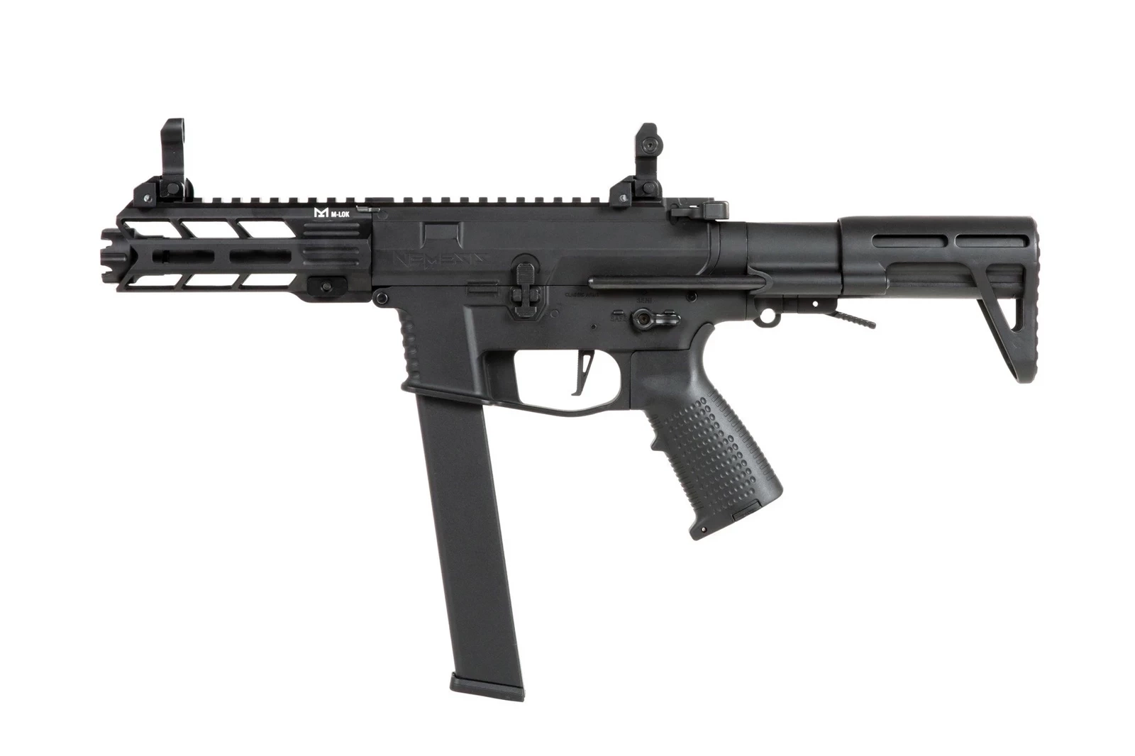 Serię Nemesis charakteryzują repliki wykonane w całości z metalu wraz z częściami ze stali. Zastosowanie ergonomicznego chwytu oraz obustronnych manipulatorów poprawia wygodę użytkownika. Składana, dwupozycyjna kolba pozwala zaś na dopasowanie długości repliki do użytkownika i czyni z niej kompaktowa konstrukcję, idealną do rozgrywek CQB. Na korpusie naniesiono oznaczenia producenta. Na grzbietowej szynie RIS umieszczono zaś składane przyrządy celownicze.