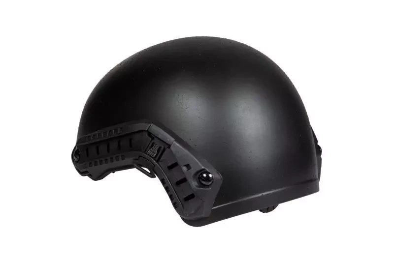 Replika kasku wykonana z tworzywa. Dzięki swojej niewielkiej wadze oraz przemyślanej konstrukcji jest bardzo wygodna w noszeniu. Znajdujące się wewnątrz gąbki powodują, iż kask jest stabilnie osadzony na głowie. Pozycję gąbek możemy dostosować do swoich preferencji, gdyż mocowane są przy pomocy rzepów. Szeroki zakres regulacji posiada 4-punktowy fasunek, zapinany na klamrę typu fastex. Dodatkowym atutem fasunku jest fakt, iż został wykonany w układzie zamkniętym, czyli nie posiada luźnych, odstających pasków regulujących.