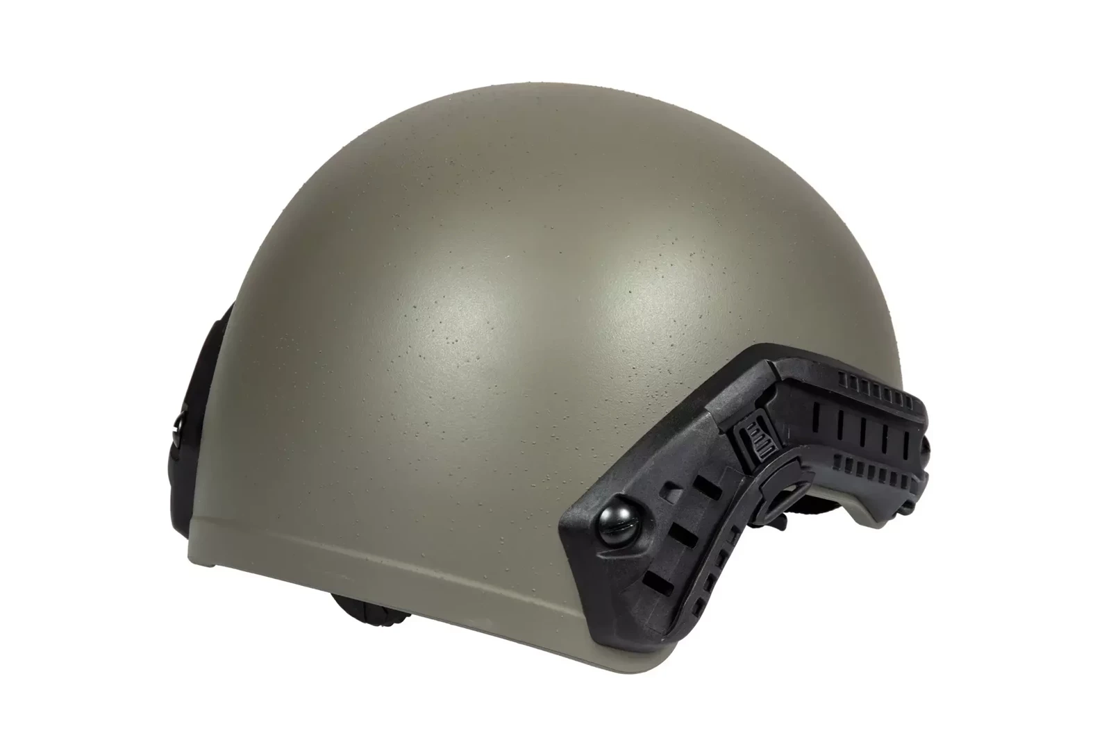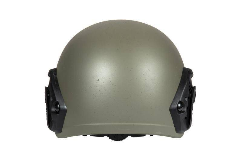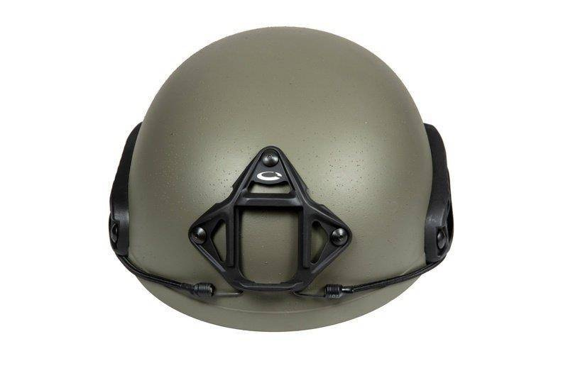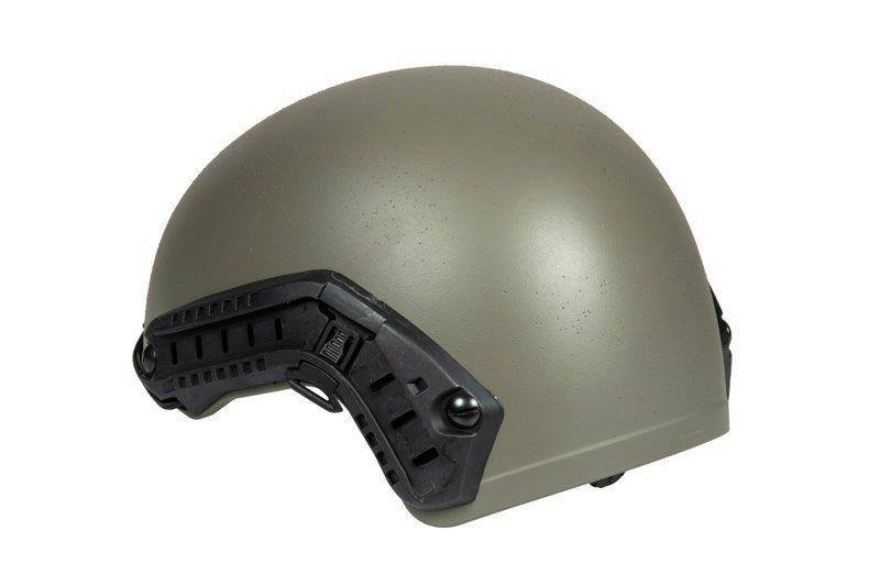 Replika kasku wykonana z tworzywa. Dzięki swojej niewielkiej wadze oraz przemyślanej konstrukcji jest bardzo wygodna w noszeniu. Znajdujące się wewnątrz gąbki powodują, iż kask jest stabilnie osadzony na głowie. Pozycję gąbek możemy dostosować do swoich preferencji, gdyż mocowane są przy pomocy rzepów. Szeroki zakres regulacji posiada 4-punktowy fasunek, zapinany na klamrę typu fastex. Dodatkowym atutem fasunku jest fakt, iż został wykonany w układzie zamkniętym, czyli nie posiada luźnych, odstających pasków regulujących.
