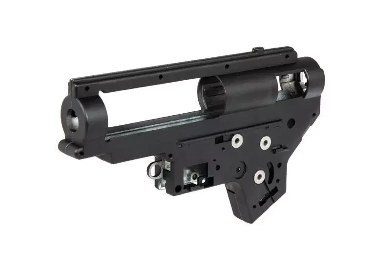 Wykonany z metalu wytrzymały szkielet gearboxa V2 dedykowany do replik karabinków AR15. Szkielet jest dostosowany do systemu szybkiej wymiany sprężyny ESA™.