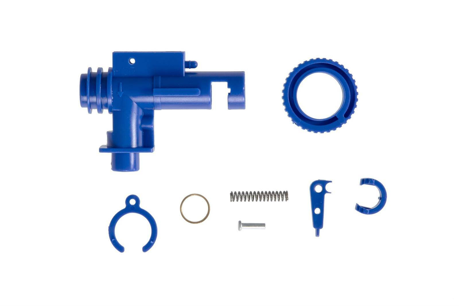 Wykonana z polimerowego tworzywa sztucznego rotacyjna komora hop-up do replik typu AR15. Zastosowanie wygodnego pokrętła umożliwia szybkie i precyzyjne ustawienie systemu podkręcenia kulki hop-up.