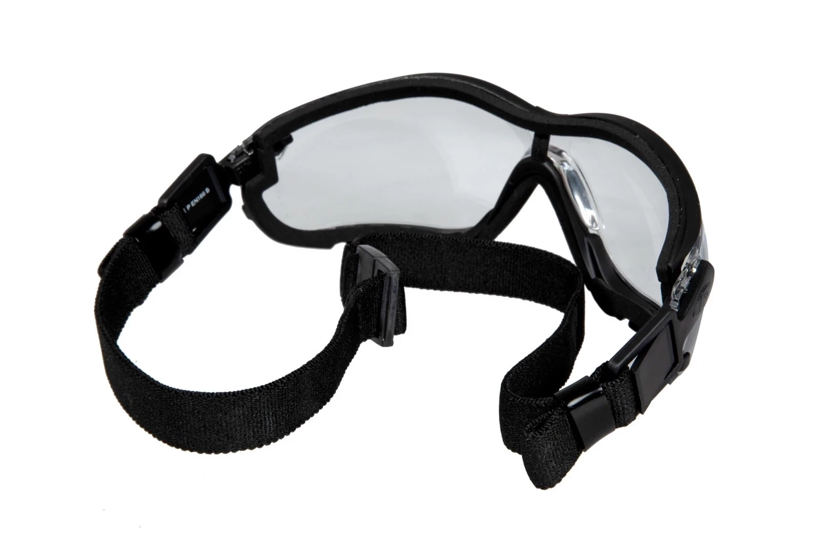 Najwyższej jakości okulary ochronne wykonane z wytrzymałego poliwęglanu w USA przez firmę PYRAMEX. Model V2G posiada kilka ciekawych rozwiązań jak: pojedyncza szybka z powłoką Anti-Fog, ramkę z miękką i odporną na płomienia gąbką czy możliwość odpięcia zauszników oraz elastycznej taśmy przytrzymującej okulary na głowie. Odporna na zarysowania szybka posiada ochronę 99% UV przed promieniami słonecznymi.