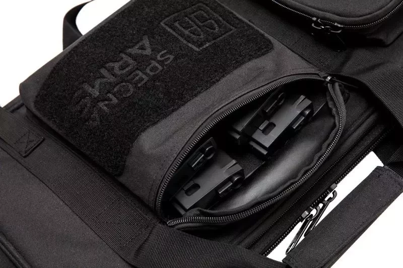 Pokrowiec na replikę marki Specna Arms wykonany z wytrzymałego Nylonu. Pokrowiec pomieści 2 repliki: pistolet maszynowy o długości max 550mm oraz karabinek o długości max 810mm, a po rozwinięciu dodatkowego rękawa długość zwiększa się do 1150mm. Dzięki wielu uchwytom transportowym oraz wypełnieniu z miękkiej pianki pokrowiec Specna Arms Gun Bag pozwoli bezpiecznie i wygodnie przetransportować replikę airsoftową na pole walki, strzelnicę, czy do samochodu.