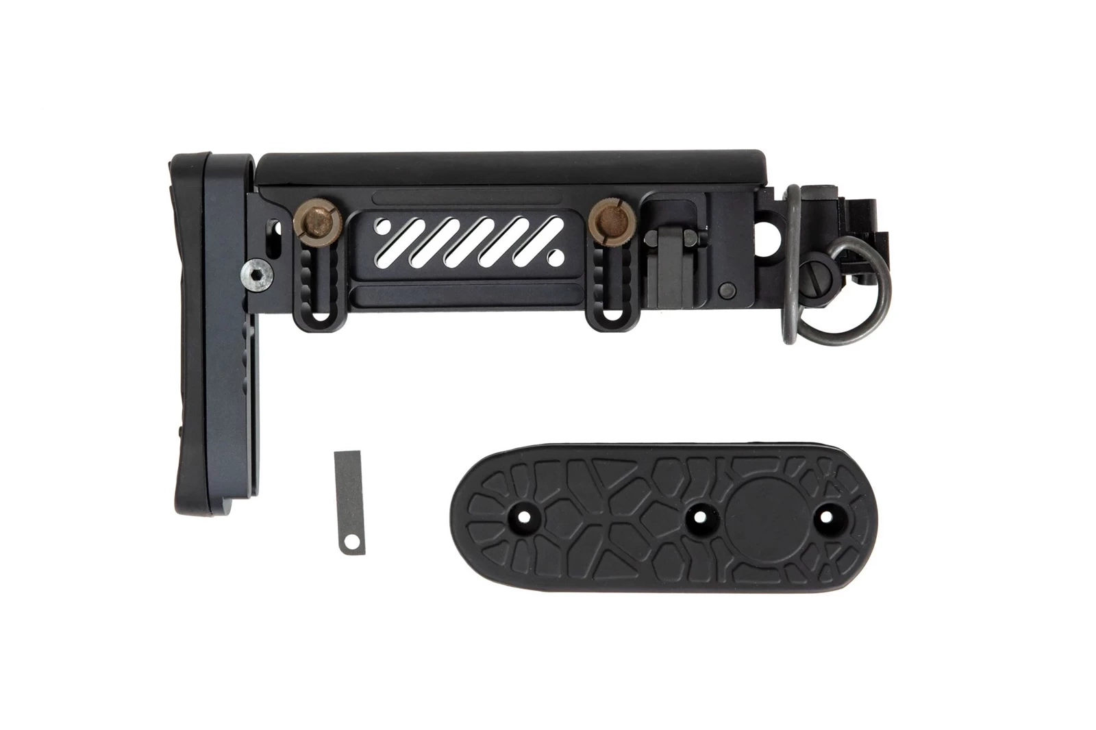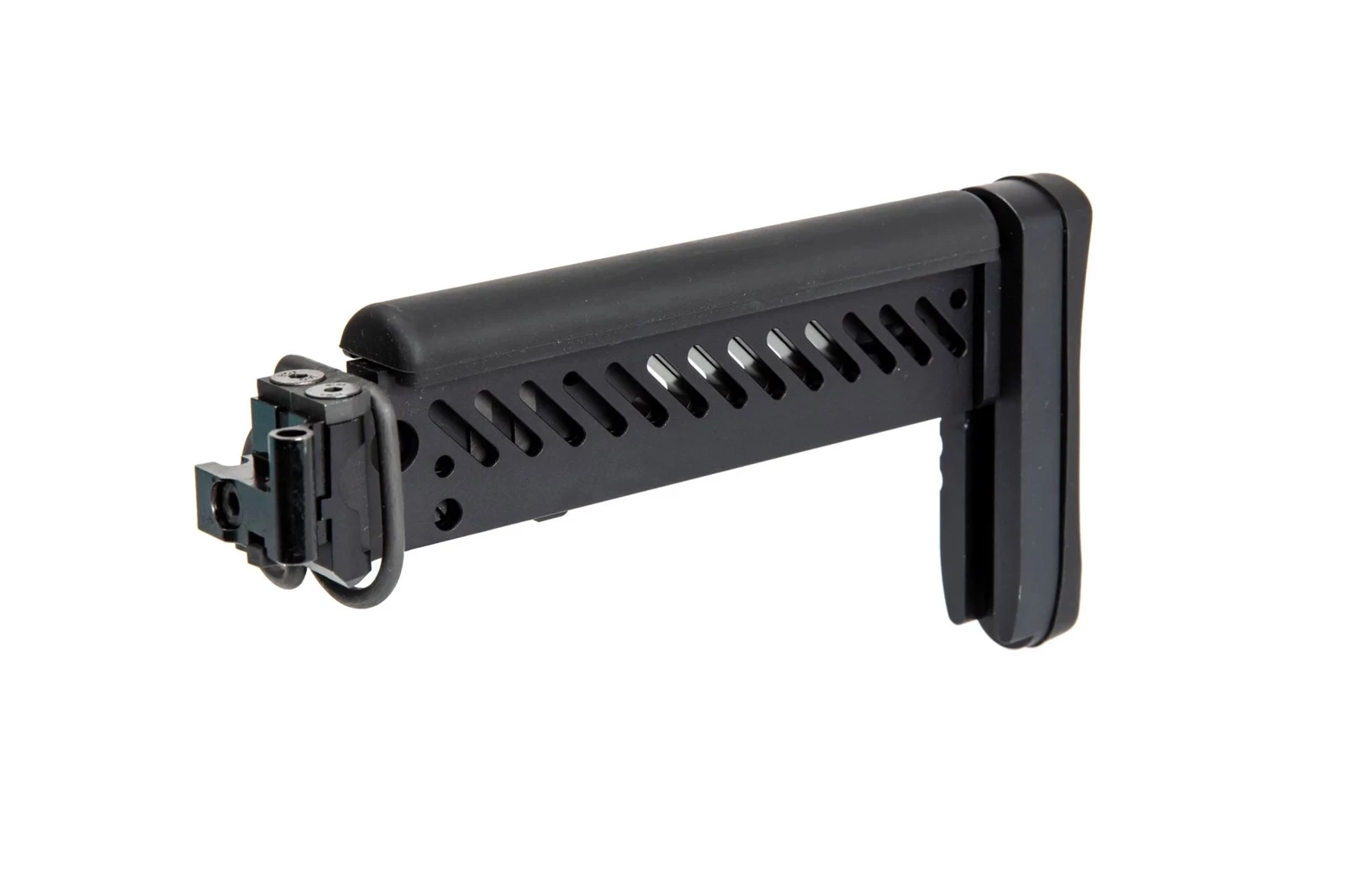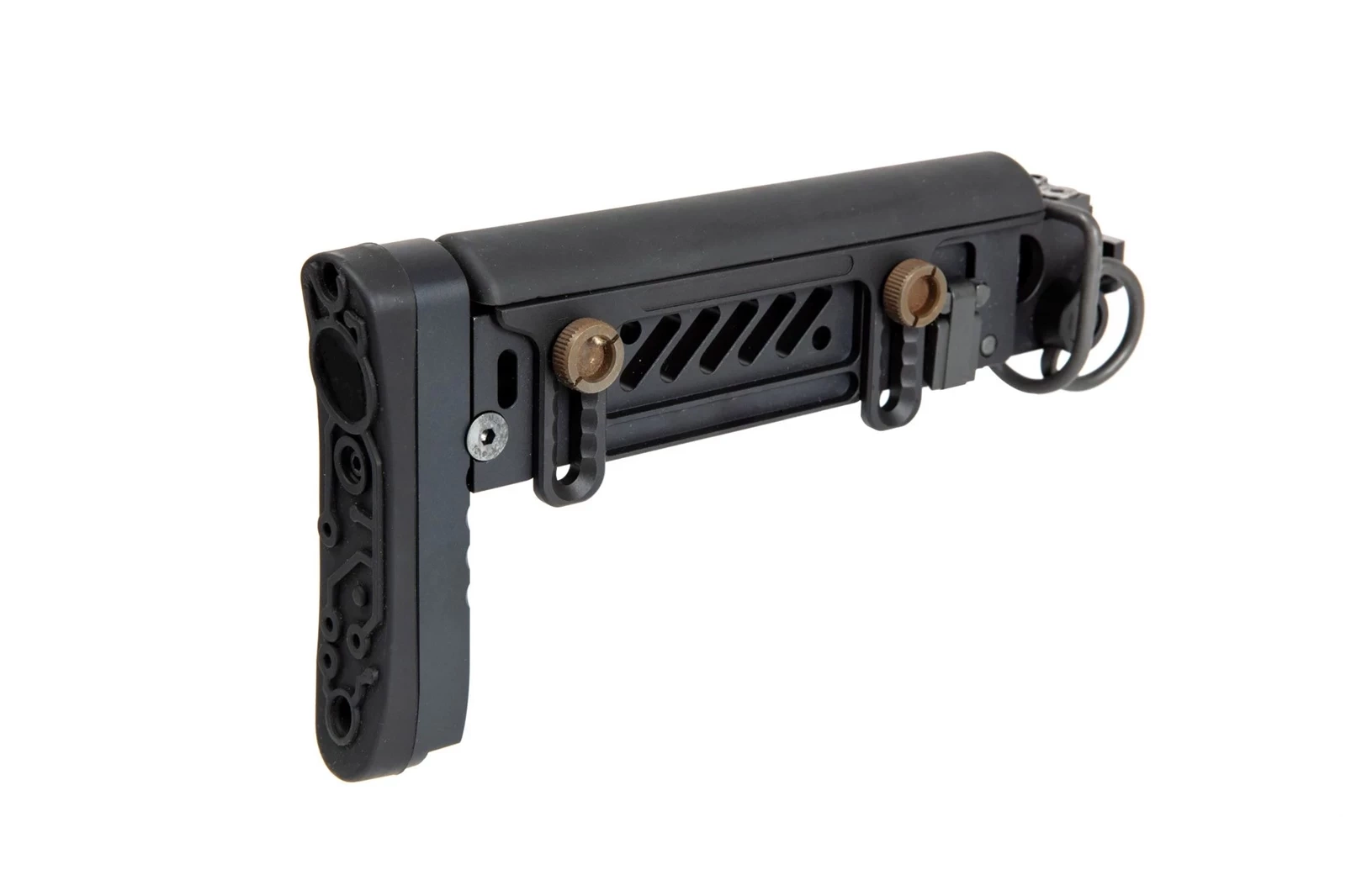 Kolba posiada płynną regulację długości, zakończona jest wygodną stopką z twardej gumy. Z gumy wykonano również poduszkę policzkową, której wysokość jest regulowana. Kolba pasuje do replik typu AK ze składaną kolbą, np modeli AKS-74, bądź AK74M.