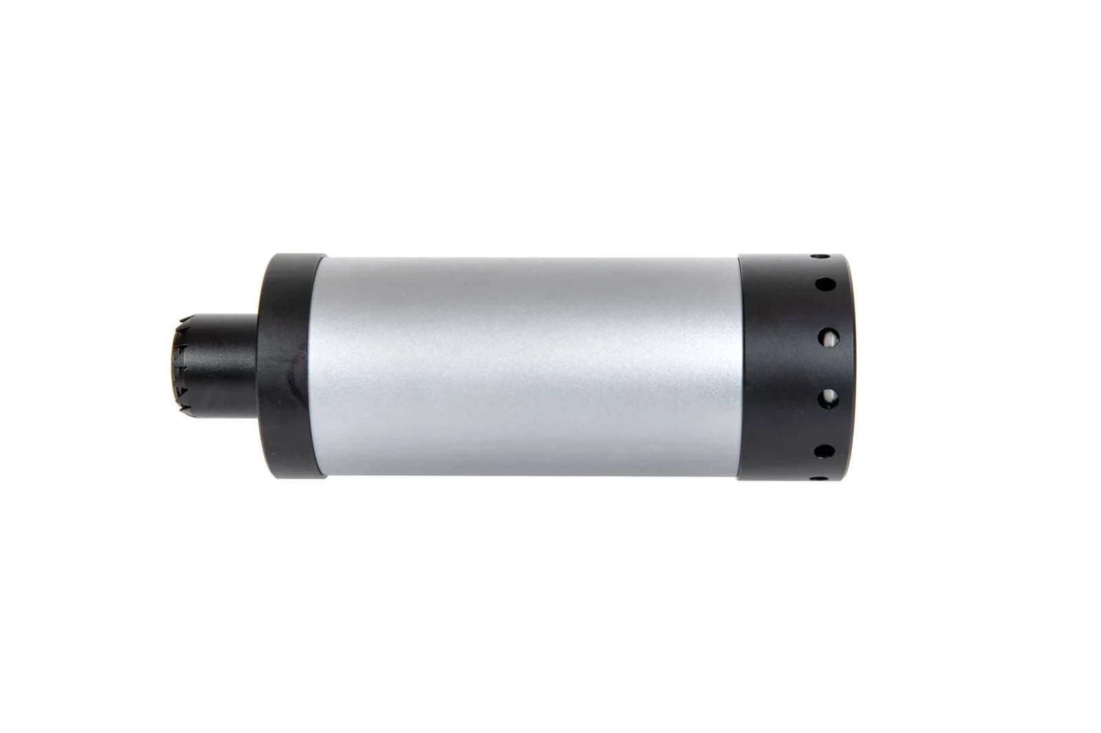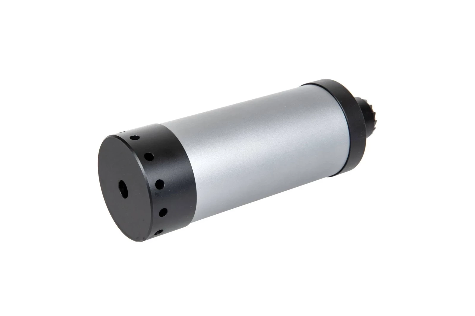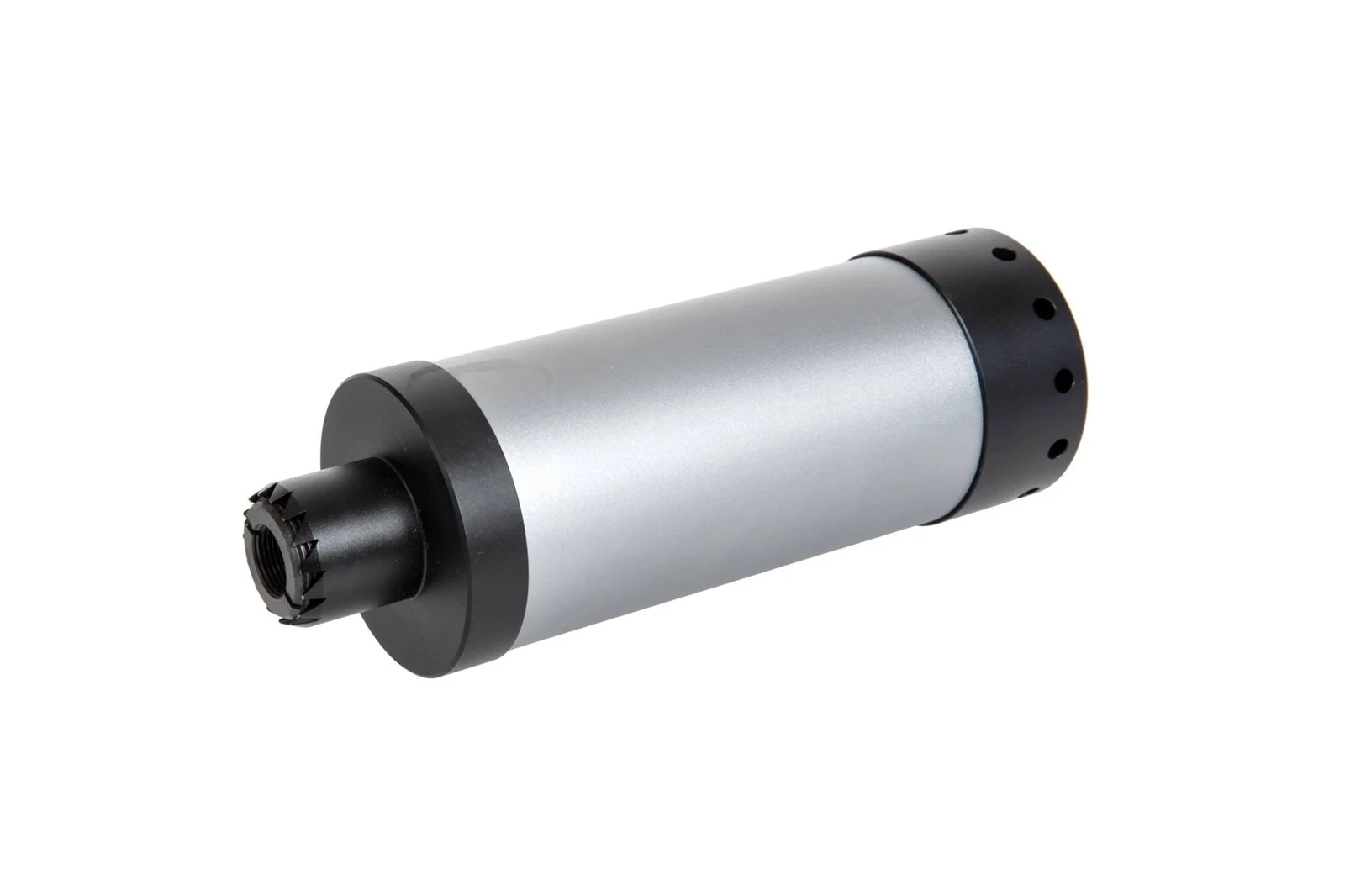 Wykonany z aluminium replika tłumika dźwięku przeznaczonego do replik AK a także wszystkich replik wyposażonych w gwint 14mm CCW i 24mm CW. Tłumik w środku posiada gąbkowe wygłuszenie.