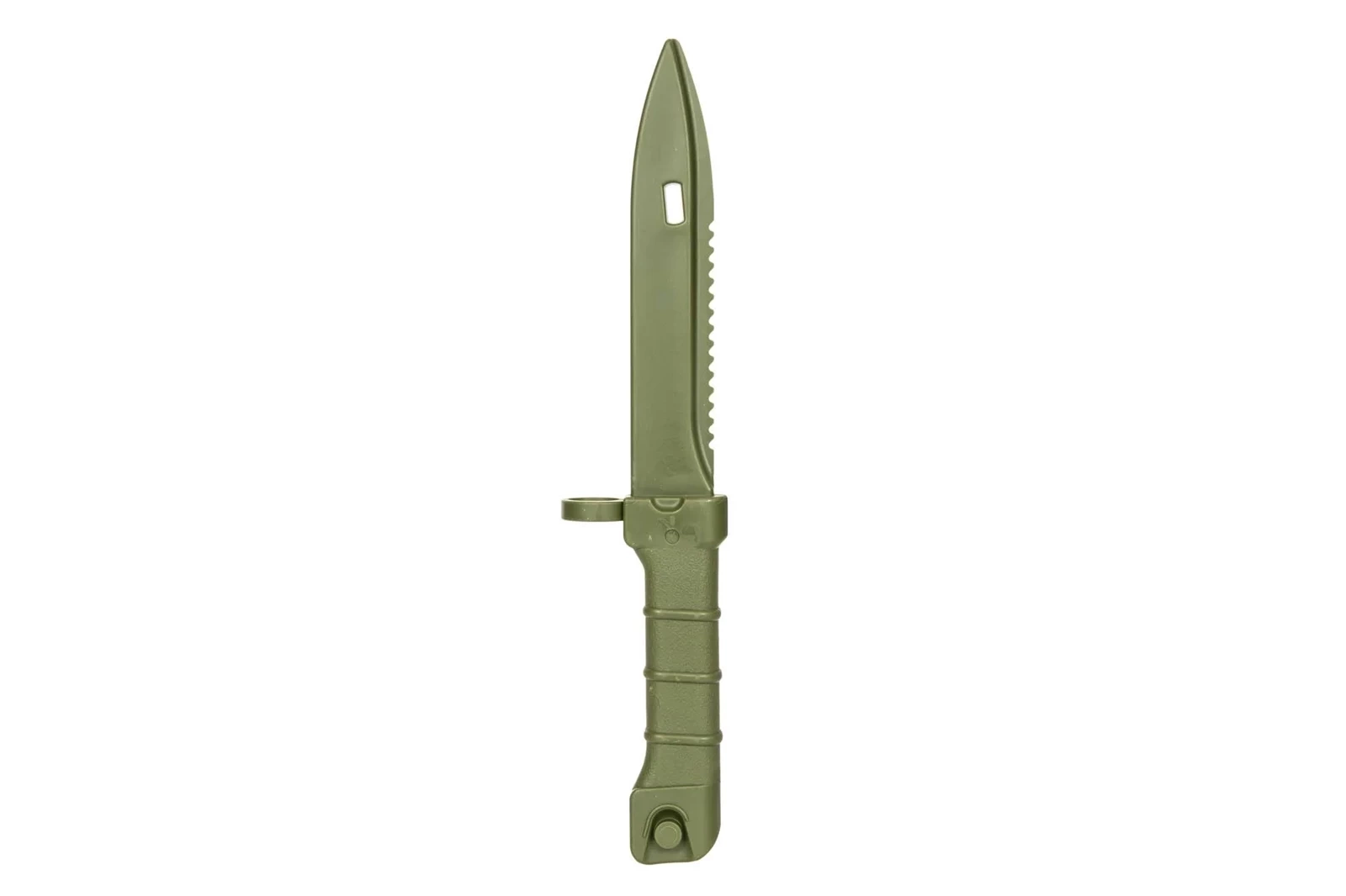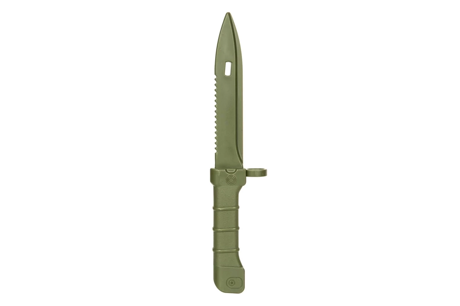Treningowa replika bagnetu do karabinów typu AK74 / SWD. Głownia bagnetu została wykonana z wytrzymałego, ale giętkiego tworzywa sztucznego. Atrapa idealna do treningów, symulacji, etc.