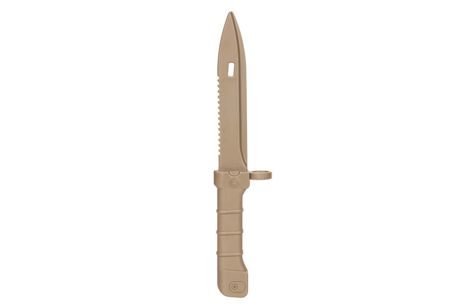 Treningowa replika bagnetu do karabinów typu AK74 / SWD. Głownia bagnetu została wykonana z wytrzymałego, ale giętkiego tworzywa sztucznego. Atrapa idealna do treningów, symulacji, etc.