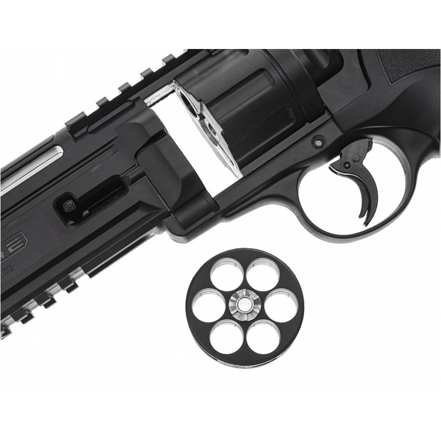 Magazynek wykonano z lekkiego, wytrzymałego polimeru oraz metalu (trzpień). Do magazynka pasują wszystkie pociski wykorzystywane do rewolweru Umarex T4E HDR 50:
