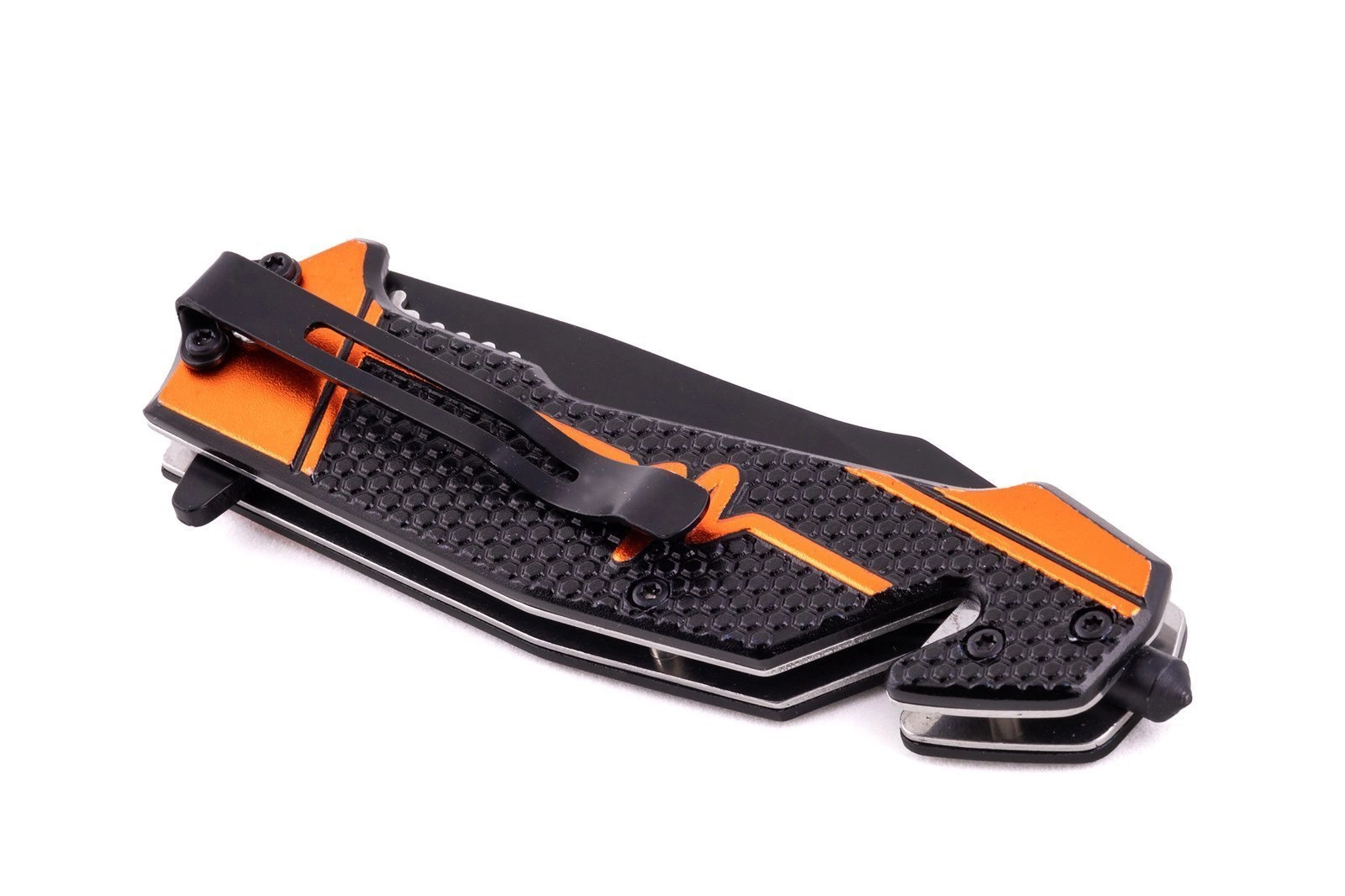 Nóż otwiera się po naciśnięciu palcem wskazującym – flippera, który w pozycji otwartej noża stanowi skuteczne zabezpieczenie przed przypadkowym zsunięciem się palców na ostrze. Dodatkowymi elementami wyposażenia noża, z których możemy korzystać w pozycji złożonej, bez konieczności jego otwierania, są: przecinak służący do cięcia pasów i lin, oraz glass breaker, czyli zbijak do szyb. W nożu o charakterze ratowniczym, są to niezbędne elementy wyposażenia.