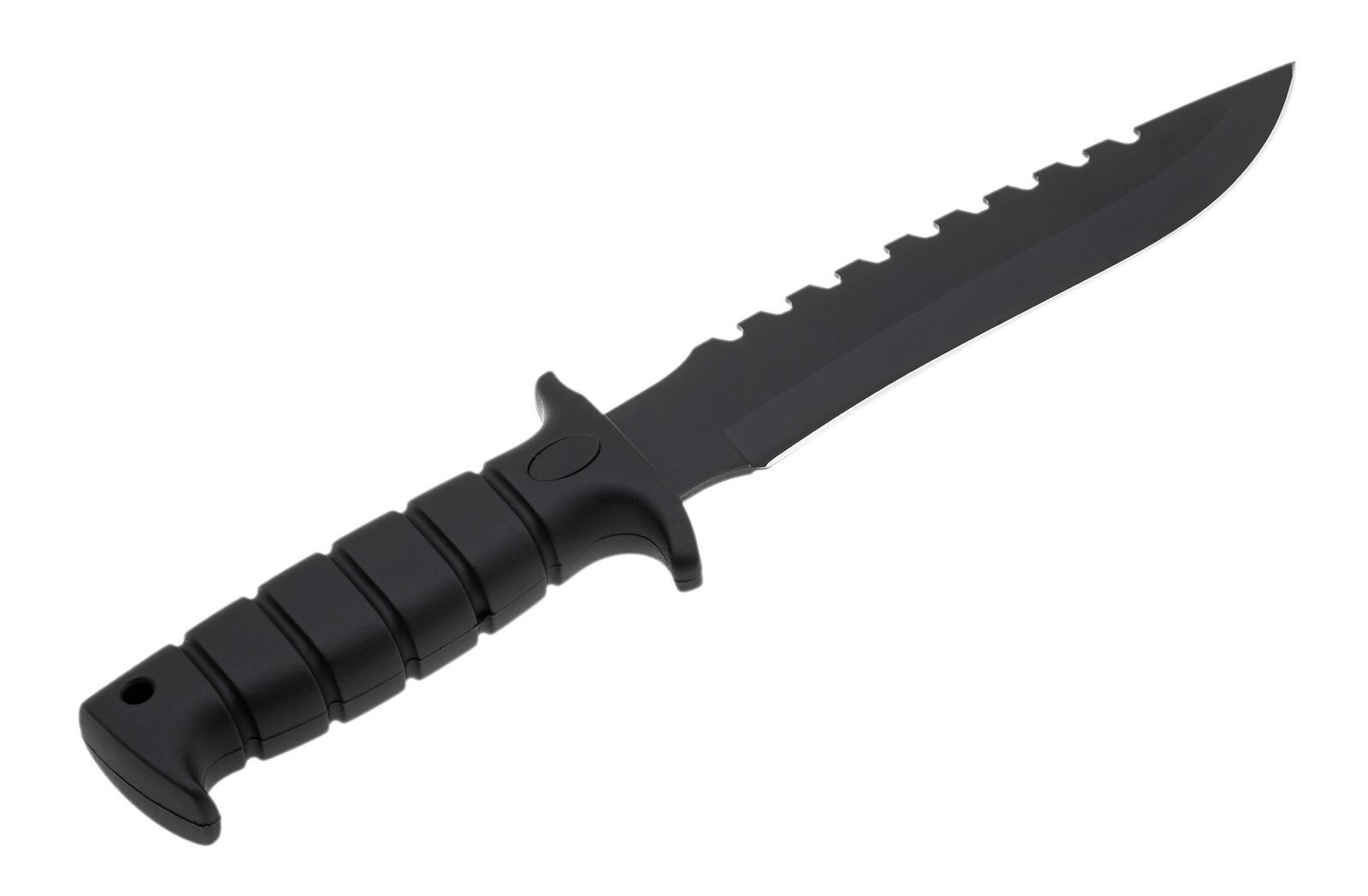 Zębaty grzbiet głowni wykonanej nadaje jej bardzo agresywny, budzący respekt wygląd. Głownia jest lekko wyprofilowana na kształt fali. Ostrze typu plain (całkowicie gładkie) jest bardzo długie i łatwe do ostrzenia.