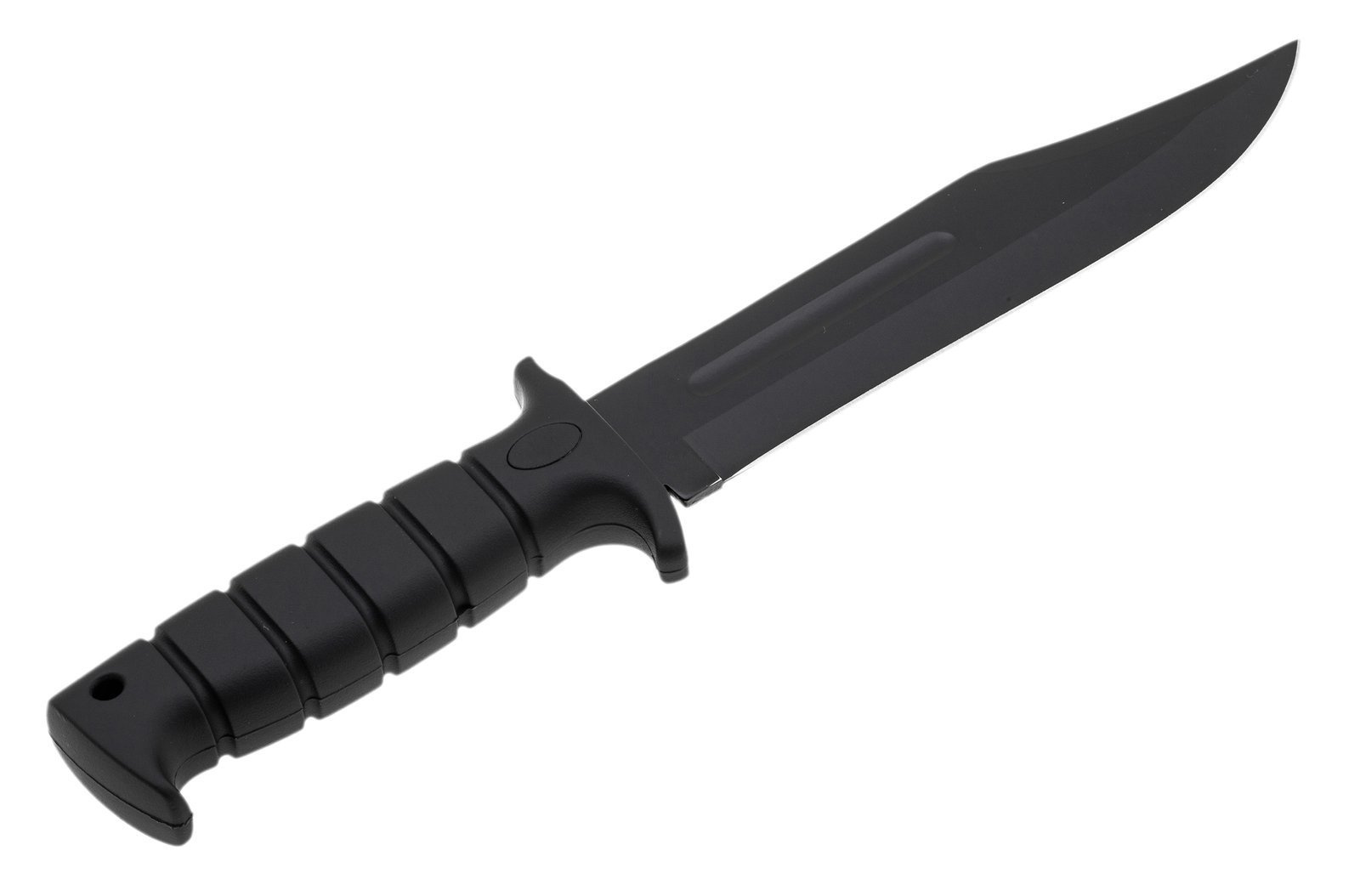 Ergonomiczna rękojeść, której wykonana jest z tworzywa sztucznego ABS charakteryzującego się wysoką odpornością na uszko­dzenia mechaniczne i bardzo dobrymi właściwościami izolacyjnymi, zapewnia doskonałą przyczepność. Posiada także otwór umożliwiający przytroczenie noża do elementów wyposażenia.