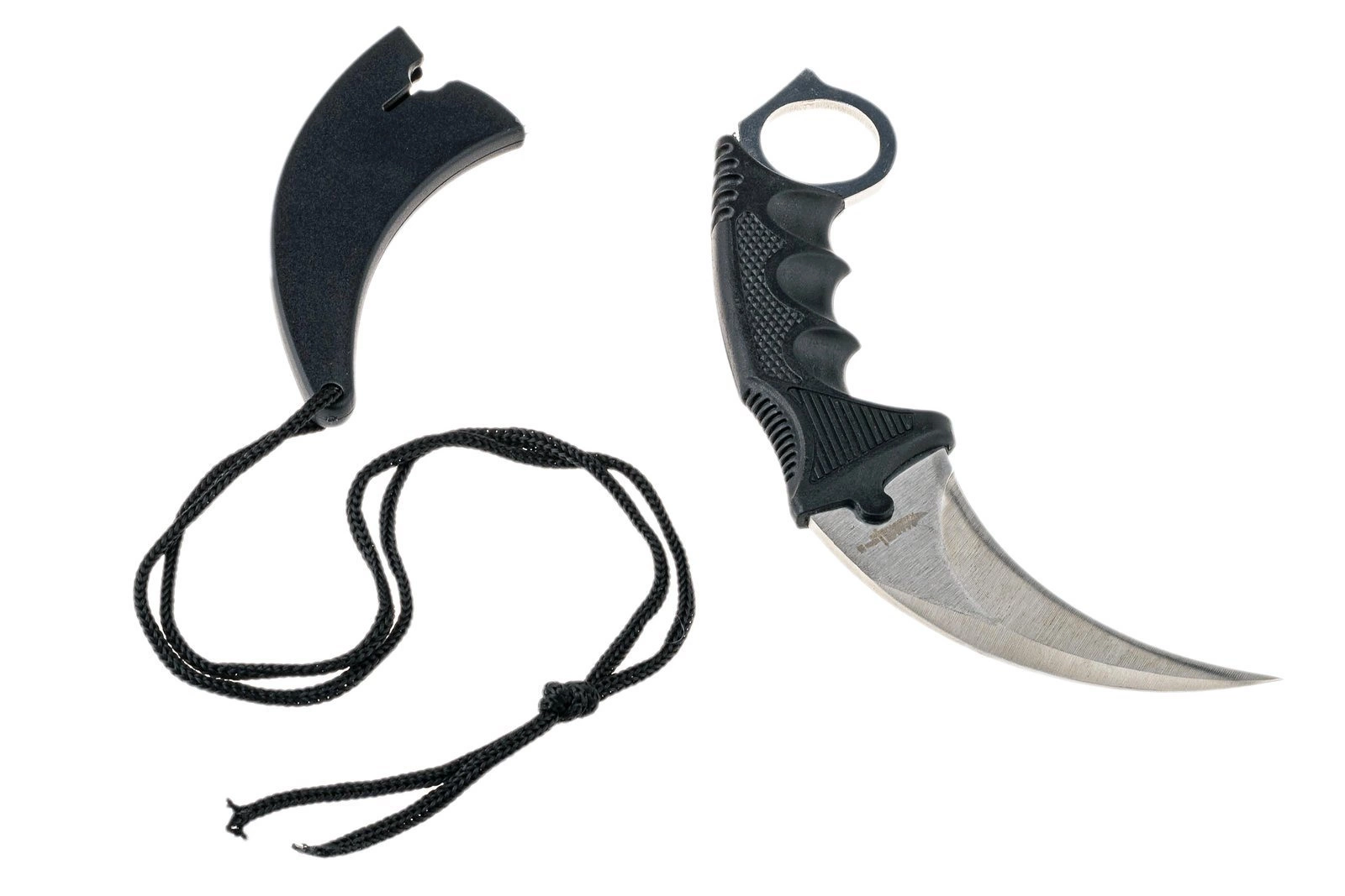 Kultowy nóż typu karambit wielorakiego przeznaczenia, zarówno do wykonywania trików jak i standardowego użytkowania. Zagięte ostrze świetnie sprawdza się w cięciu. Prosta i solidna konstrukcja noża zapewnia trwałość i wysoką jakość. Nóż posiada pokrowiec z tworzywa, który zabezpiecza ostrze podczas przechowywania, a także sznur do zawieszenia go w dowolnym miejscu.