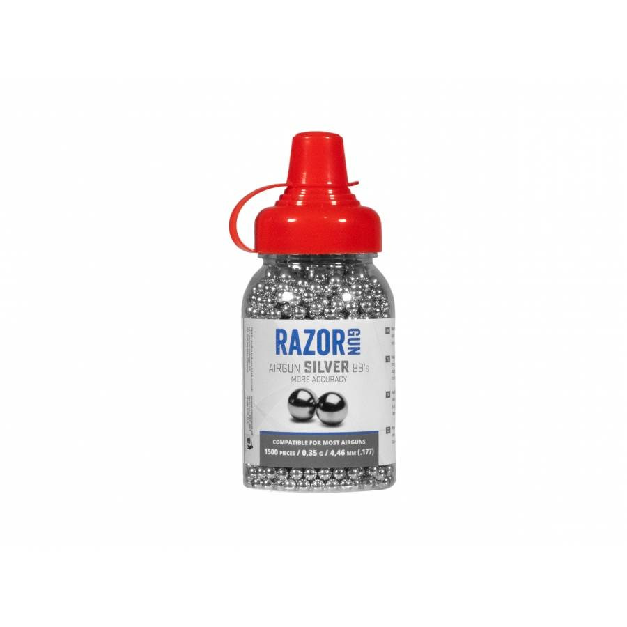 Śrut przeznaczony przede wszystkim do pistoletów wielostrzałowych, z magazynkami rzędowymi np. Beretta, Walther, Desert Eagle, Crosman i innych zdolnych strzelać kulkami typu BBs. Śrut BBs RazorGun charakteryzuje się idealną gładkością, precyzją wykonania oraz twardością, dzięki czemu poprawia się jego tor lotu oraz celność. Praktyczny słoiczek z lejkiem znacznie ułatwia szybkie ładowanie magazynka.