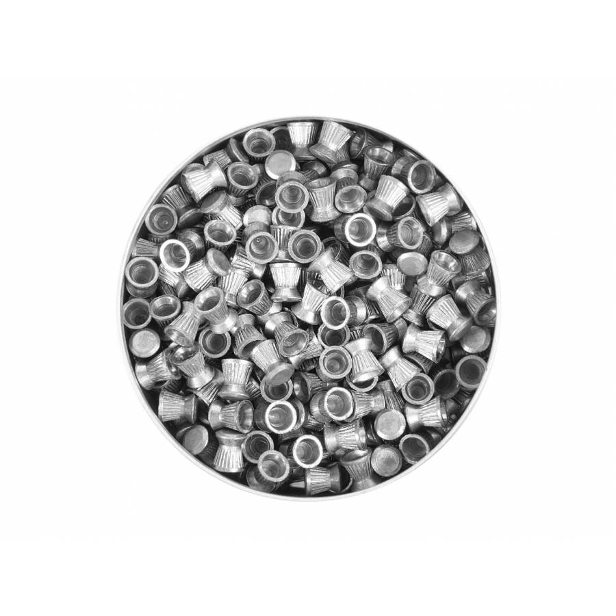 Płaska główka wycina precyzyjnie okrągłe przestrzeliny, co w znacznym stopniu ułatwia liczenie punktów. Śrut moletowany najlepiej sprawdza się w starszych karabinkach z lufami o płytkim gwincie.