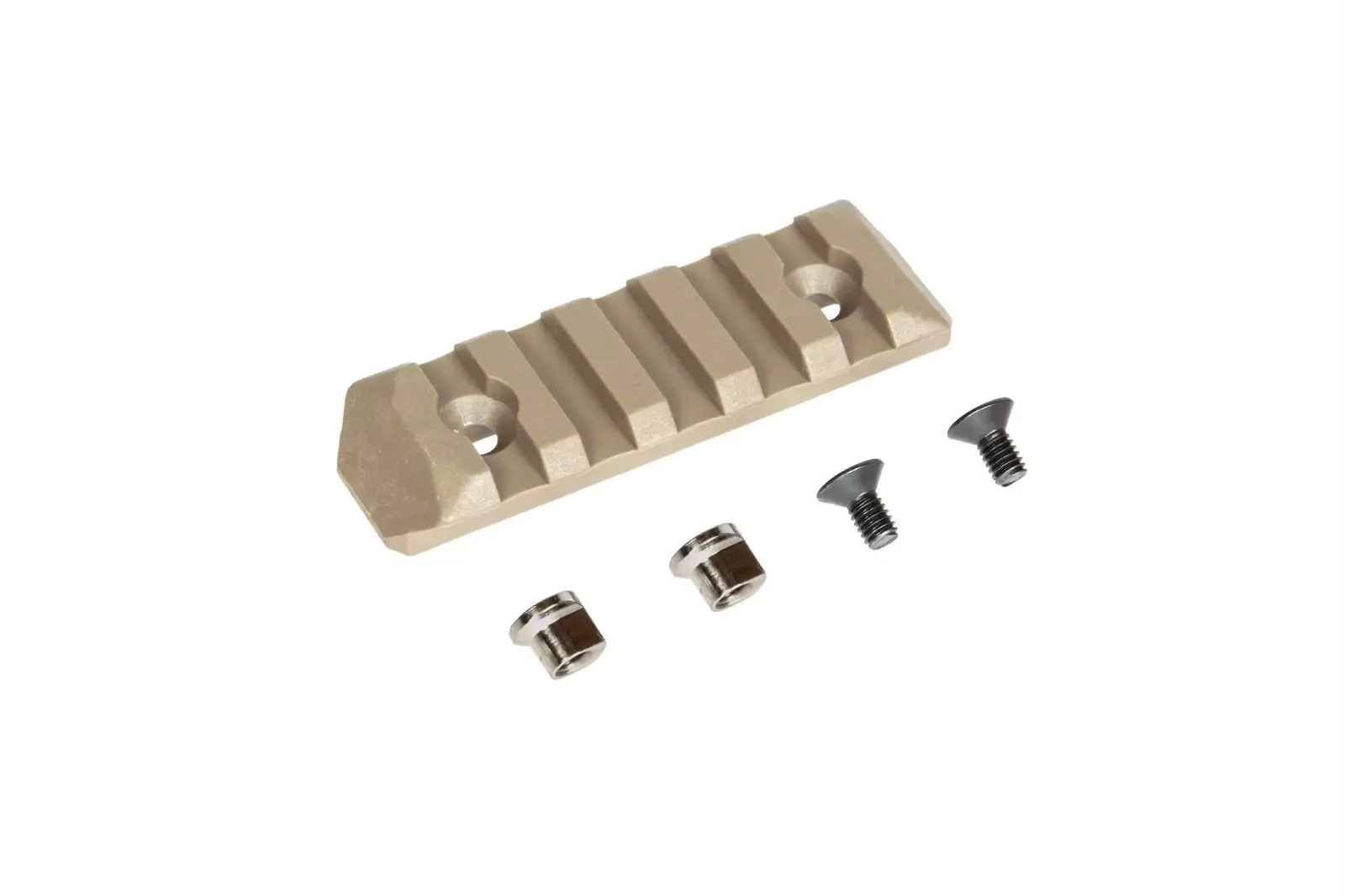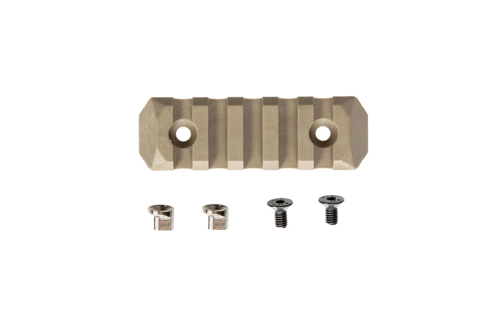 Odcinek szyny RIS / Picatinny o długości 5 slotów wykonany z tworzywa polimerowego. Szyna posiada montaż kompatybilny z systemem modułowym KeyMod.