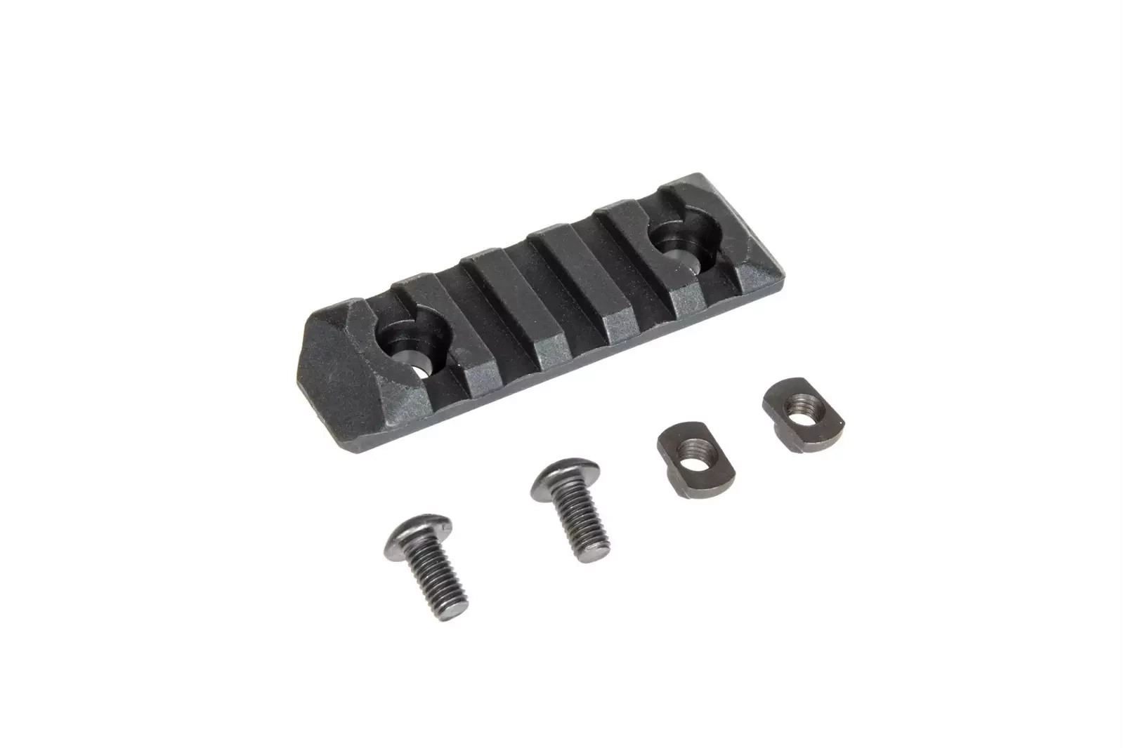 Odcinek szyny RIS / Picatinny o długości 5 slotów wykonany z tworzywa polimerowego. Szyna posiada montaż kompatybilny z systemem modułowym M-LOK.