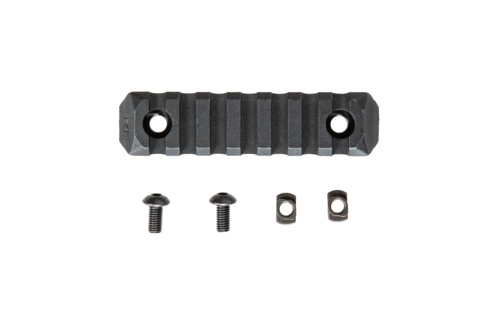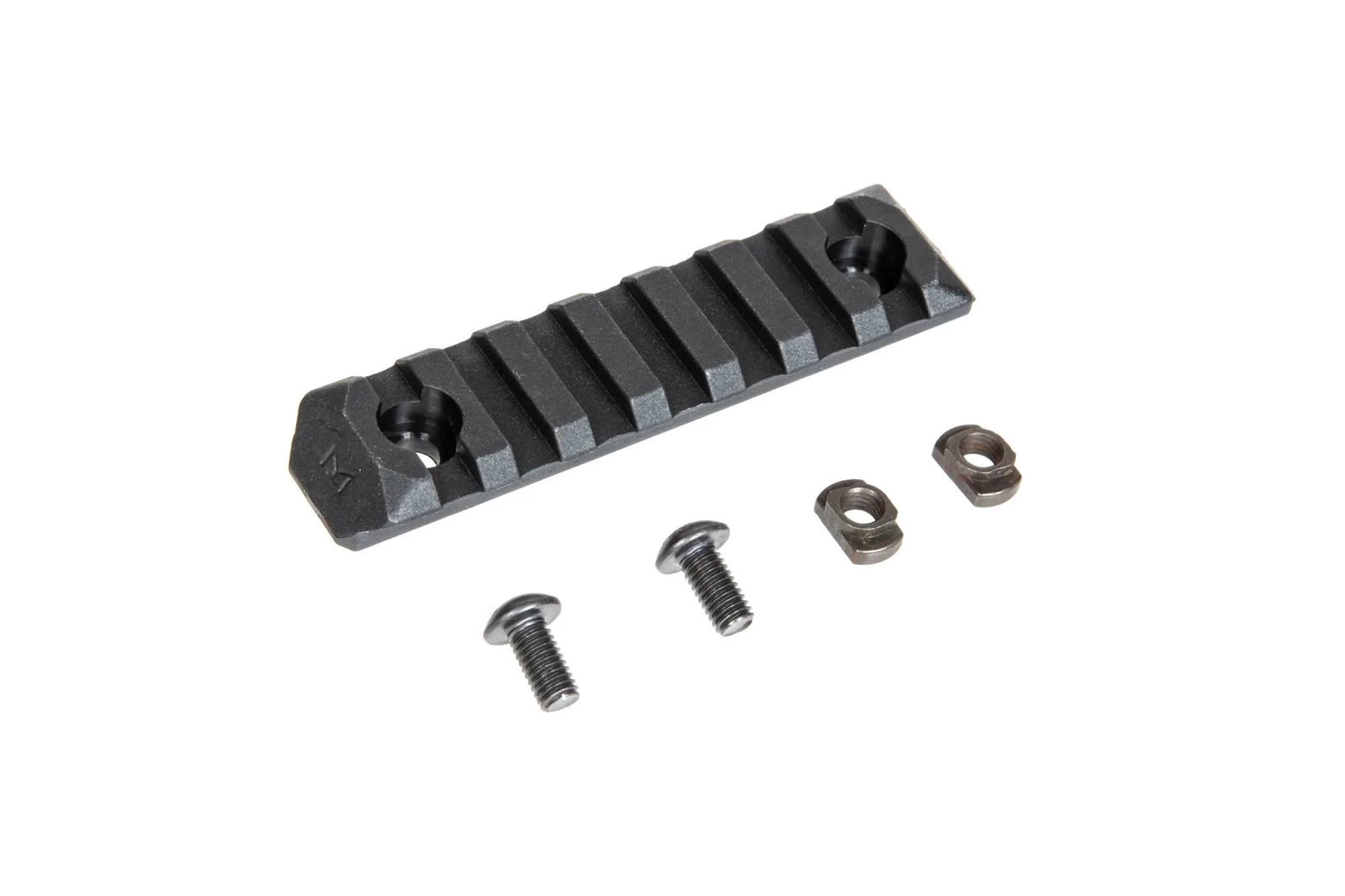 Odcinek szyny RIS / Picatinny o długości 7 slotów wykonany z tworzywa polimerowego. Szyna posiada montaż kompatybilny z systemem modułowym M-LOK.