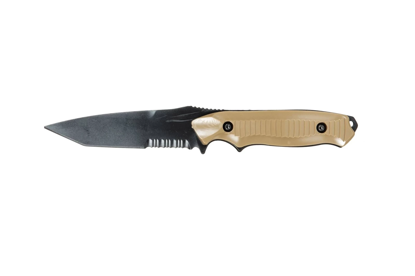 Głownia noża została wykonana z wytrzymałego, ale giętkiego tworzywa sztucznego. Rękojeść posiada żebrowaną fakturę, co zapewnia pewny chwyt. Atrapa idealna do treningów, symulacji, etc.