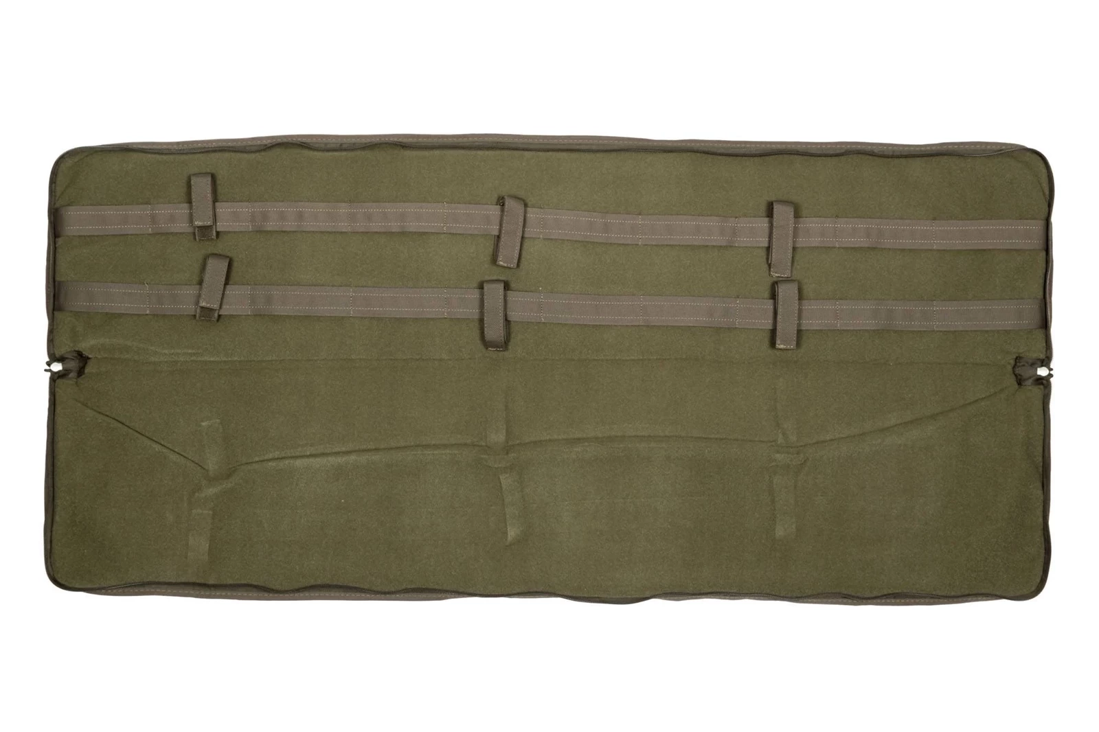 Wewnątrz głównej komory znajdują się sześć pasów stabilizujących. Mniejsza komora o wymiarach 900x220mm posiada trzy ładownice mieszczące po dwa magazynki każda oraz elastyczne pasy utrzymujące dodatkowe akcesoria na miejscu. Z zewnątrz została obszyta taśmami MOLLE pozwalającym na rozbudowanie pokrowca o dodatkowe kieszenie. Całość jest chroniona przy pomocy miękkiej gąbki.