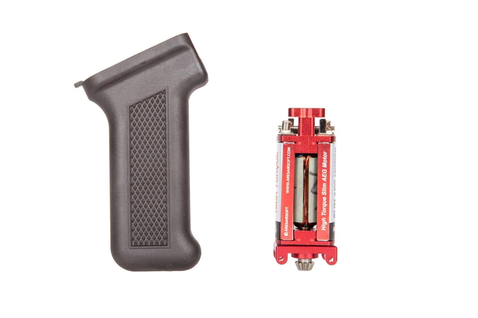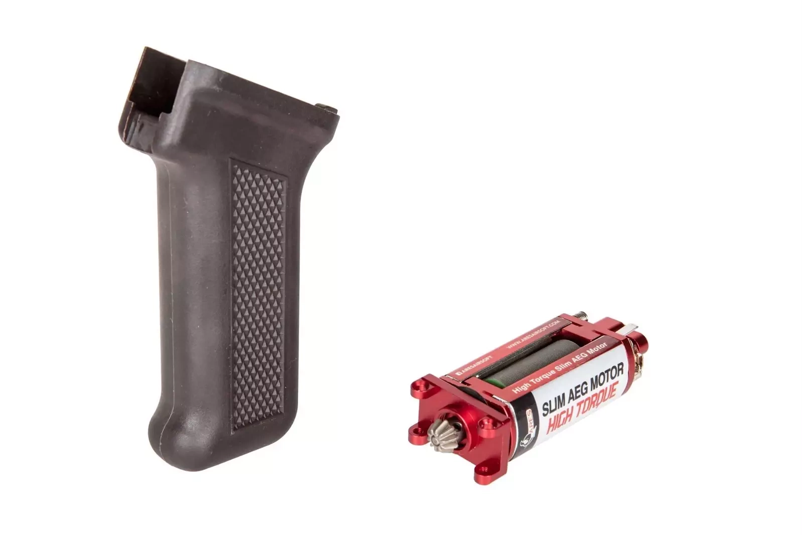 Wysokiej jakości zestaw składający się na zwężony chwyt pistoletowy oraz specjalnej konstrukcji silnik High Torque. Zestaw przeznaczony jest do montażu w replikach AMOEBA, ARES oraz podobnych konstrukcjach AK.