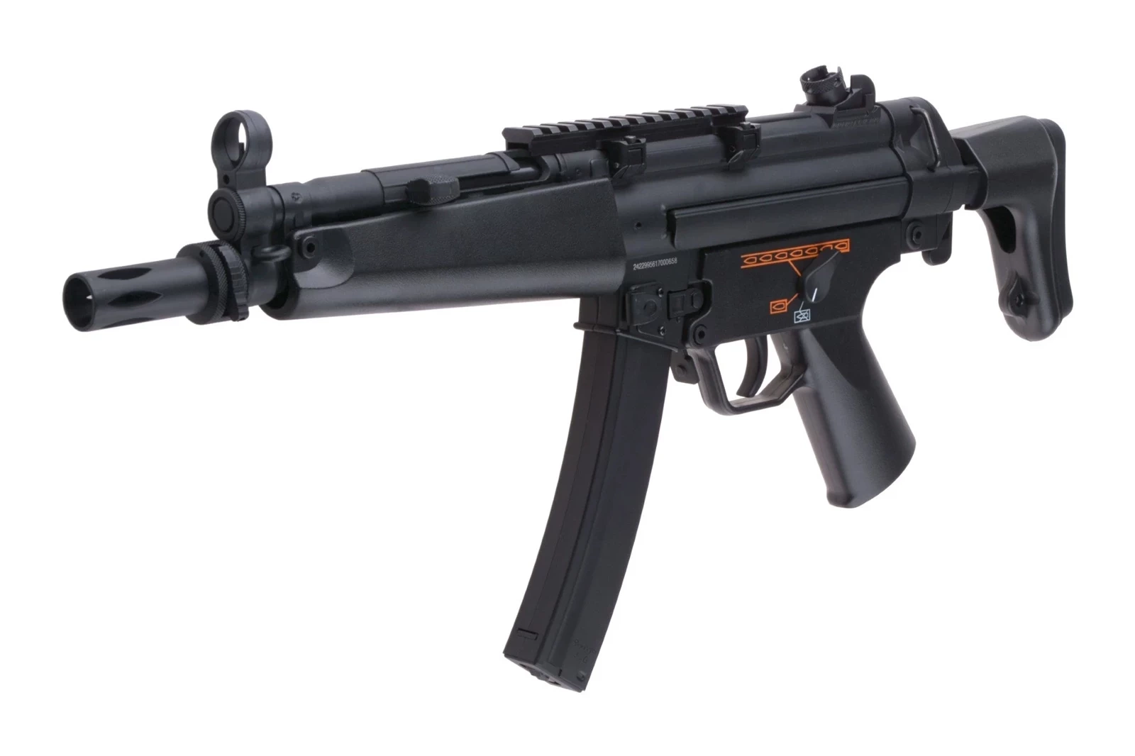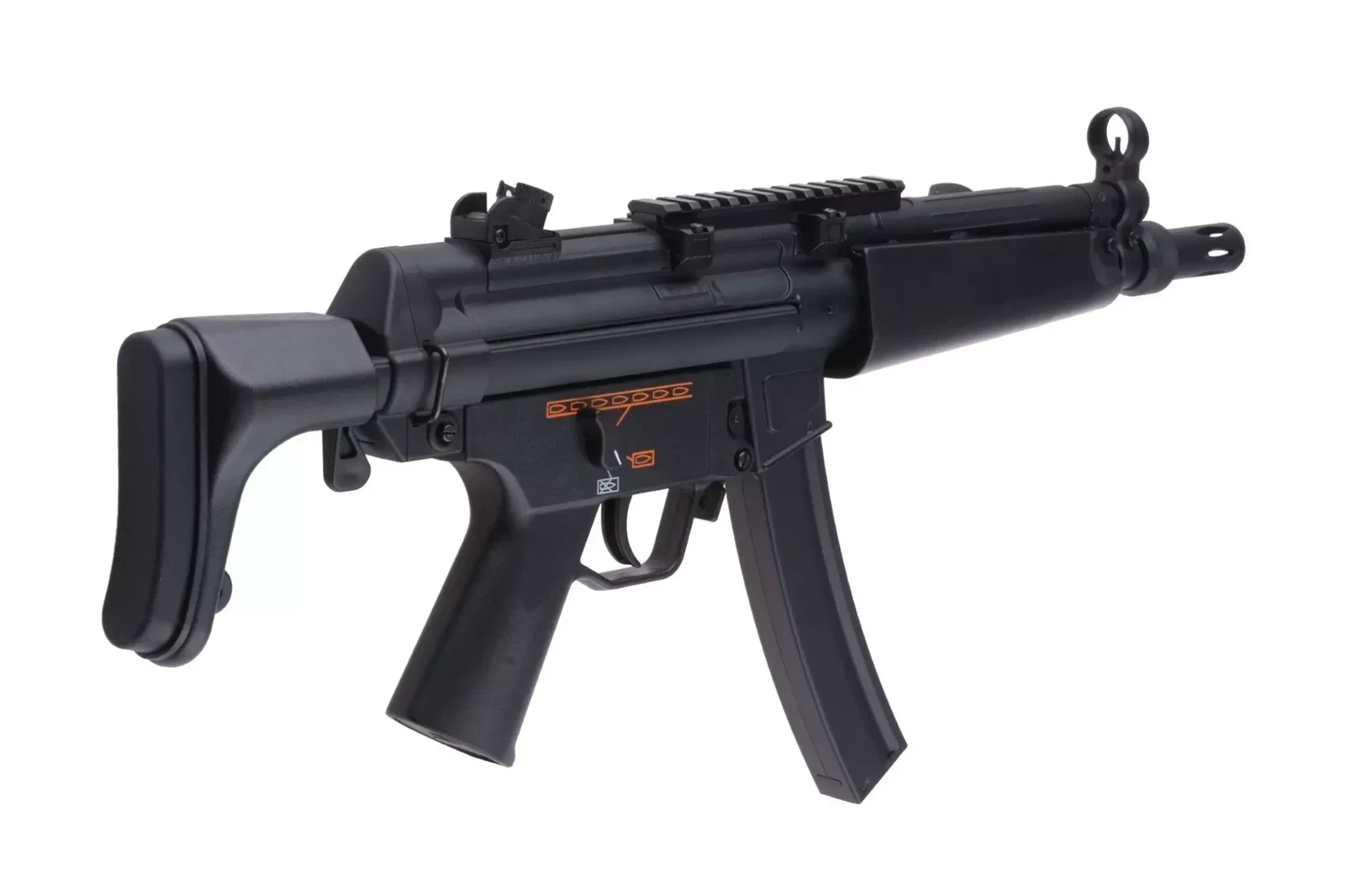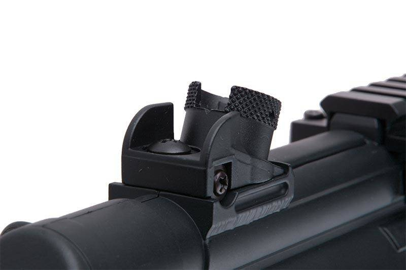 Replika wykonana została z tworzywa sztucznego oraz metalu. Elementy metalowe to przyrządy celownicze, górny korpus, zatrzask magazynka oraz język spustowy. Skorupę magazynka oraz 2 zaczepy do mocowania pasa nośnego wykonano ze stali. Niewielkie wymiary repliki sprawiają, że świetnie nadaje się do działań w terenie zabudowanym oraz w małych, ciasnych pomieszczeniach. Akumulator mieści się w chwycie przednim. W zestawie znajdziemy także szynę RIS 22mm którą umieścić należy na grzbiecie korpusu repliki, pozwoli to na montaż różnej maści lunet czy celowników kolimatorowych.