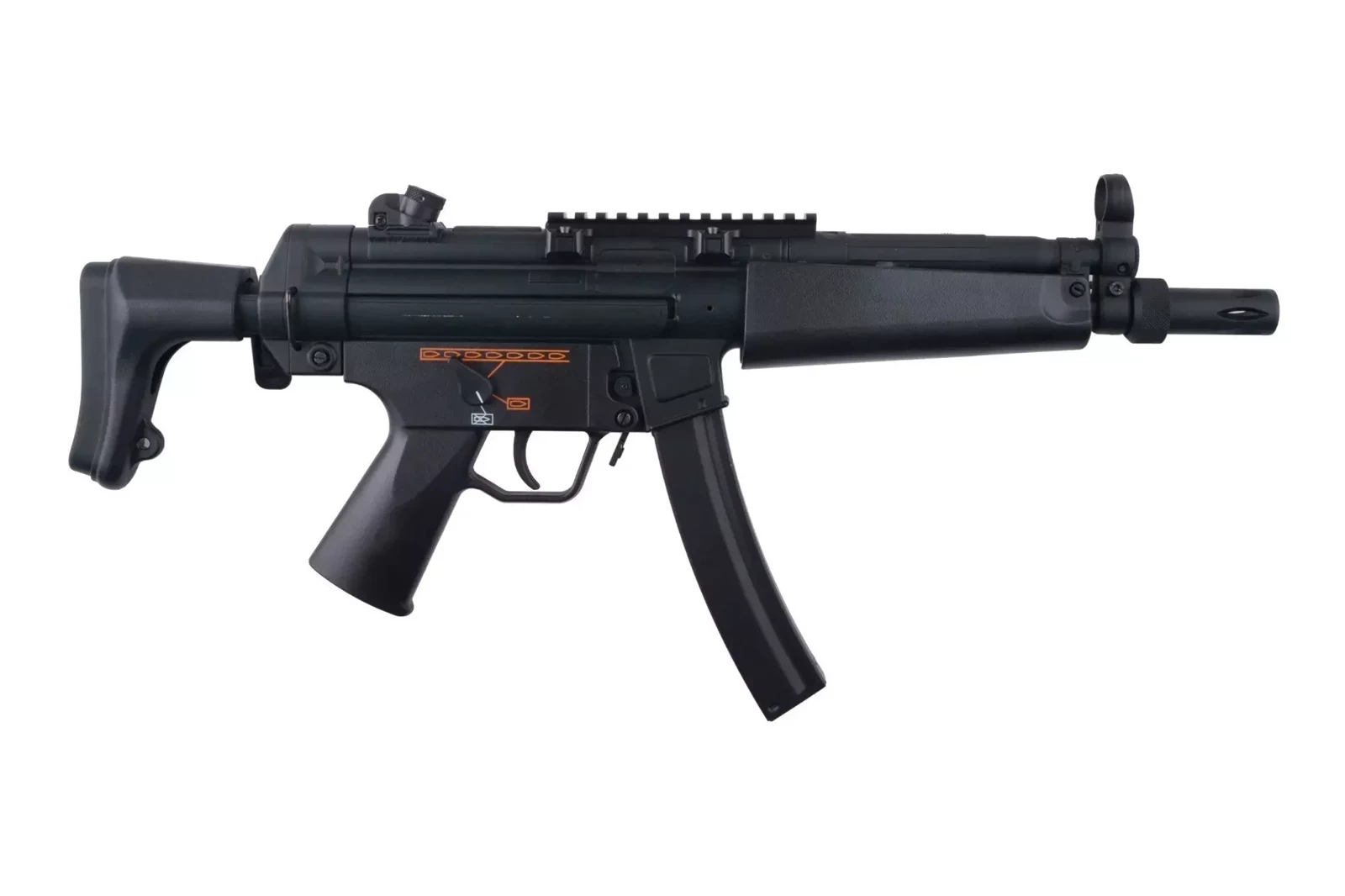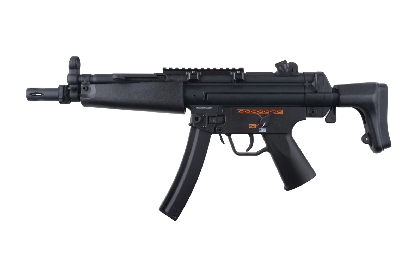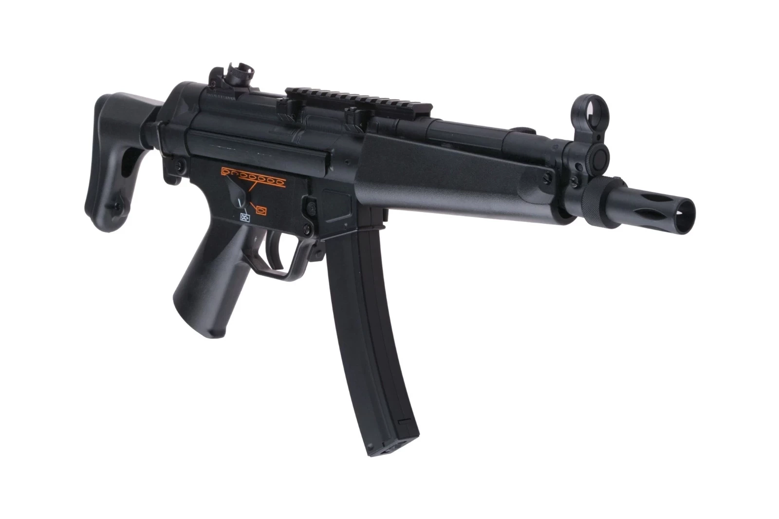 Replika wykonana została z tworzywa sztucznego oraz metalu. Elementy metalowe to przyrządy celownicze, górny korpus, zatrzask magazynka oraz język spustowy. Skorupę magazynka oraz 2 zaczepy do mocowania pasa nośnego wykonano ze stali. Niewielkie wymiary repliki sprawiają, że świetnie nadaje się do działań w terenie zabudowanym oraz w małych, ciasnych pomieszczeniach. Akumulator mieści się w chwycie przednim. W zestawie znajdziemy także szynę RIS 22mm którą umieścić należy na grzbiecie korpusu repliki, pozwoli to na montaż różnej maści lunet czy celowników kolimatorowych.
