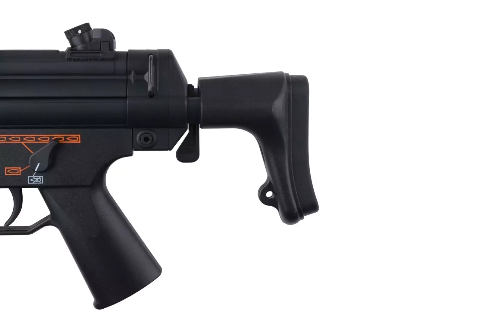 Regulacja systemu Hop-Up odbywa się poprzez dźwignie umieszczoną z lewej strony repliki, między chwytem przednim a korpusem.