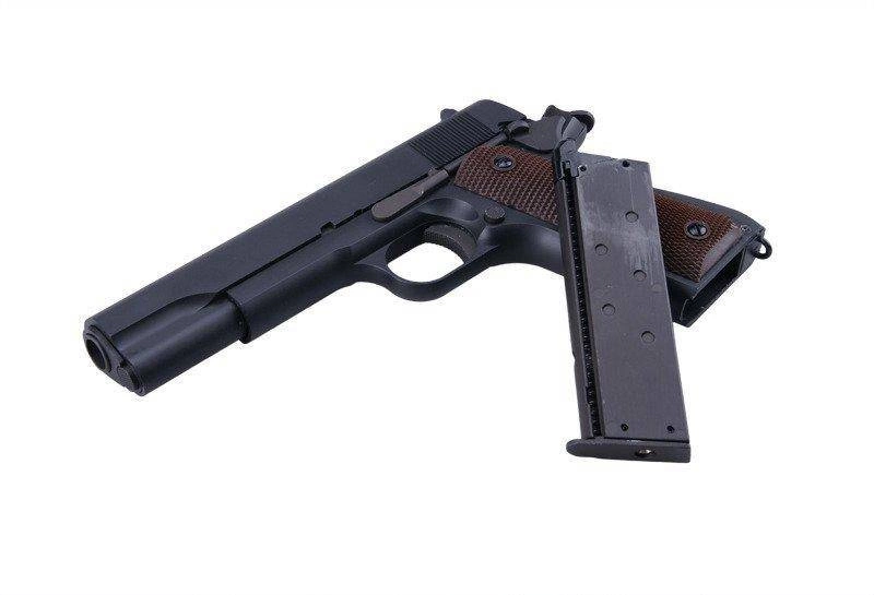 Replika pistoletu gazowego GB-0731, wywodzącego się z konstrukcji zaprojektowanej w 1900 roku przez Johna Browninga. Główna konstrukcja pistoletu wykonana została z metalu, zaś okładziny chwytu pistoletowego o profilowanej fakturze - z wytrzymałego tworzywa sztucznego. Bardzo dobre wykonanie oraz spasowanie części gwarantują bezproblemową i precyzyjną pracę repliki.