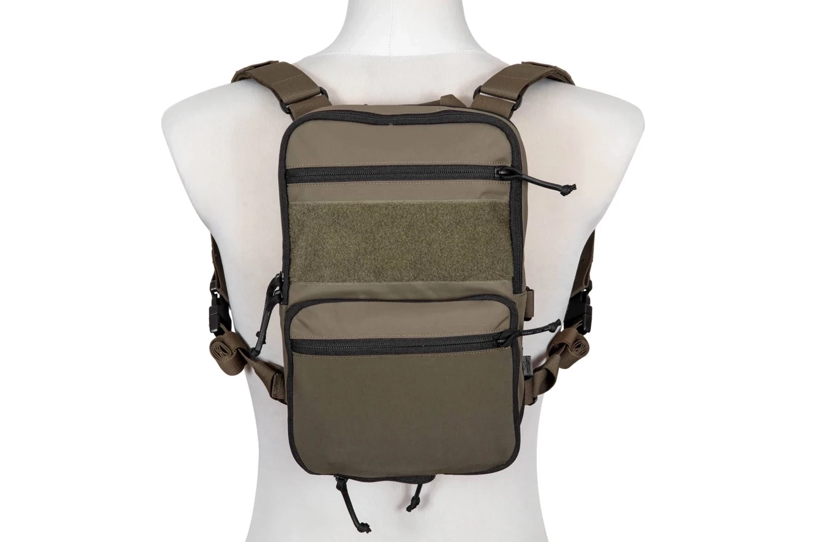 Oprócz standardowych regulowanych szelek plecak ma również możliwość bezpośredniego przypięcia do kamizelki dzięki systemowi MOLLE.