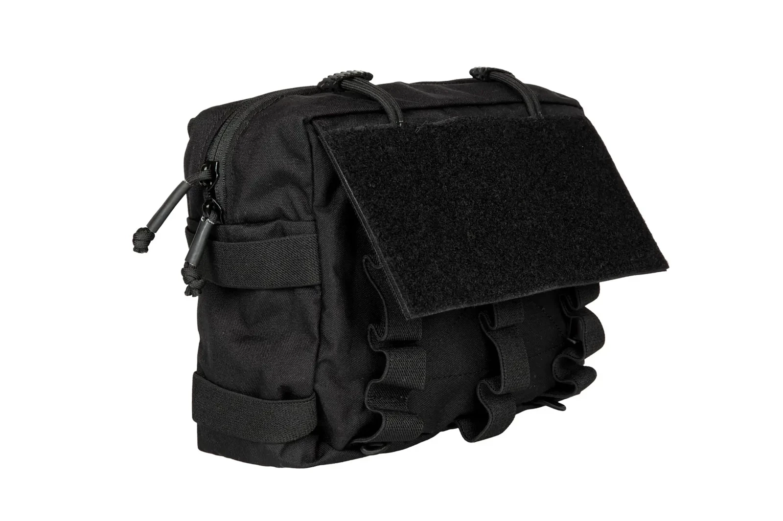 Torba posiada 2 duże kieszenie zapinane zamkami błyskawicznymi firmy YKK®, kieszeń przednia to zwykła komora do przechowywania drobniejszych przedmiotów, oraz duża kieszeń cargo z wszywkami rzepowymi na obu ściankach, pozwalającymi na montaż paneli z pętlami elastycznymi. Duża kieszeń posiada na dnie drenaż, odpowiedzialny za usuwanie wody w przypadku zanurzenia.