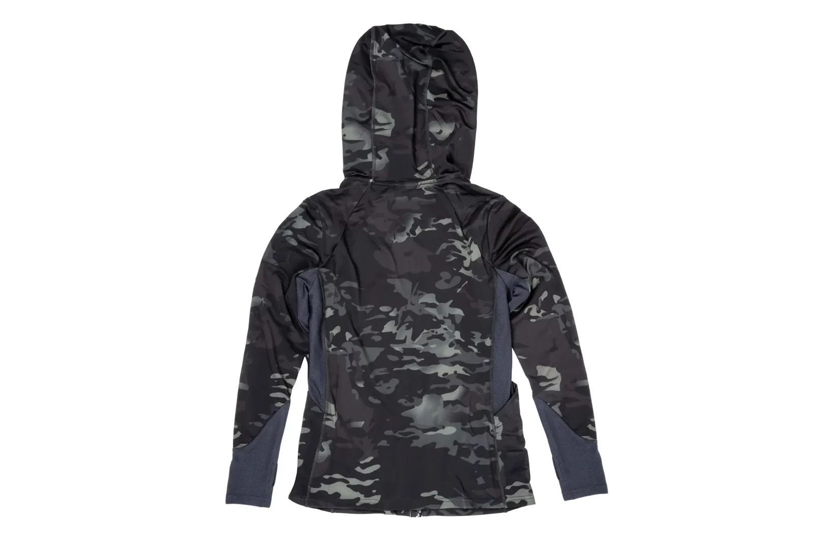 - Mankiety w rękawach z siatki, z otworami na kciuk.