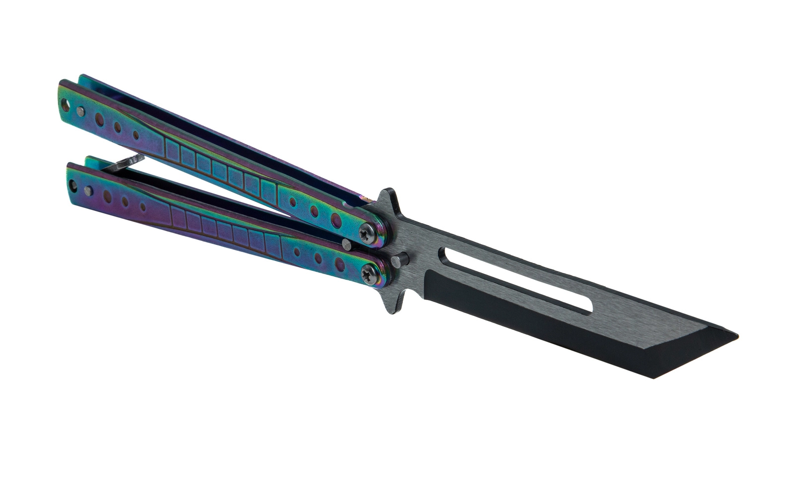 Nóż przeznaczony jest do treningu, ćwiczeń oraz wykonywania trików. Stępione ostrze zapobiega zranieniu. Prosta i solidna konstrukcja noża zapewnia trwałość i wysoką jakość. Nóż posiada zapięcie blokujące oraz specjalnie perforowaną głownię poprawiającą stabilność i lekkość podczas wykonywania sztuczek