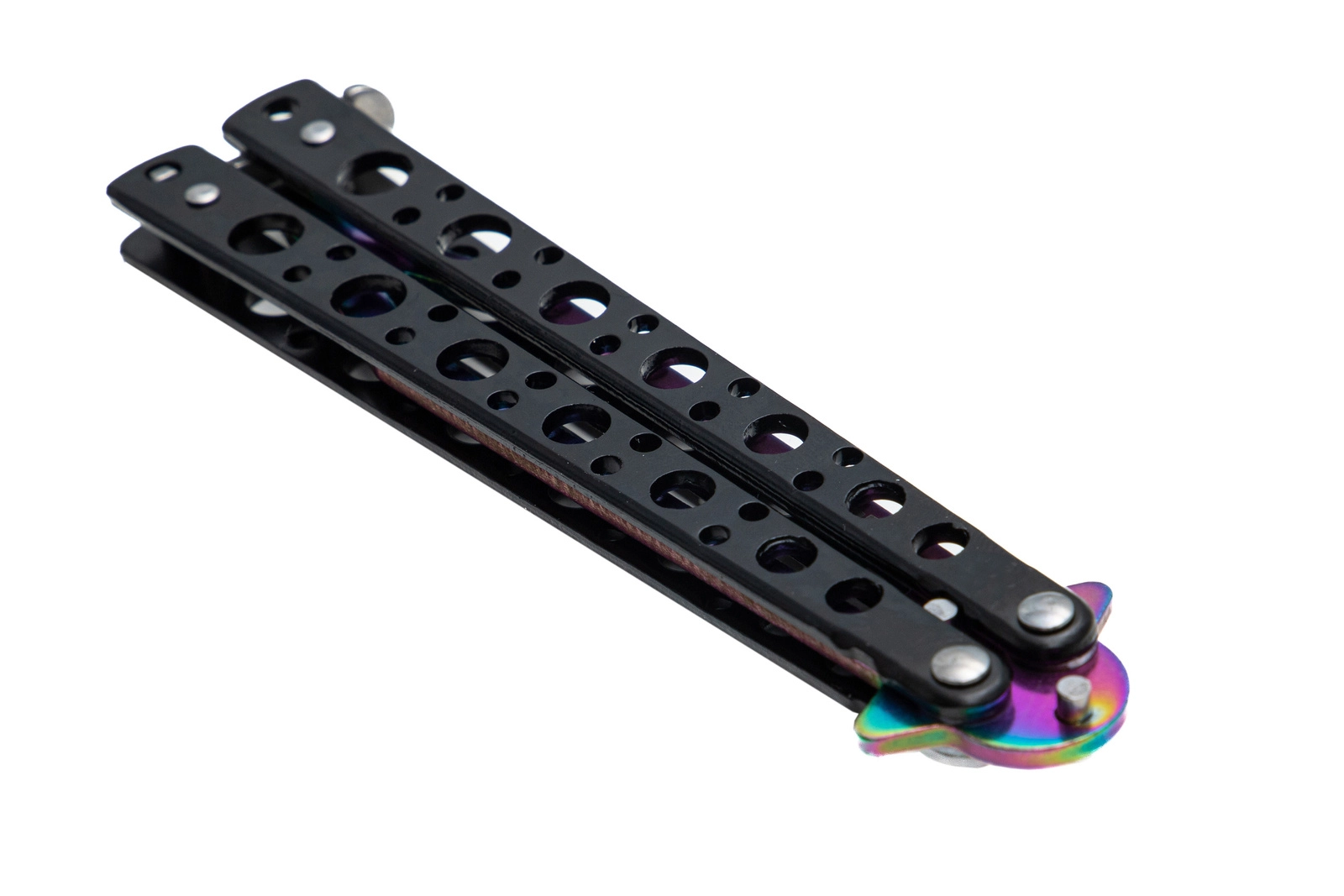 Nóż przeznaczony jest do treningu, ćwiczeń oraz wykonywania trików. Stępione ostrze zapobiega zranieniu. Prosta i solidna konstrukcja noża zapewnia trwałość i wysoką jakość. Nóż posiada zapięcie blokujące oraz specjalnie perforowaną głownię poprawiającą stabilność i lekkość podczas wykonywania sztuczek