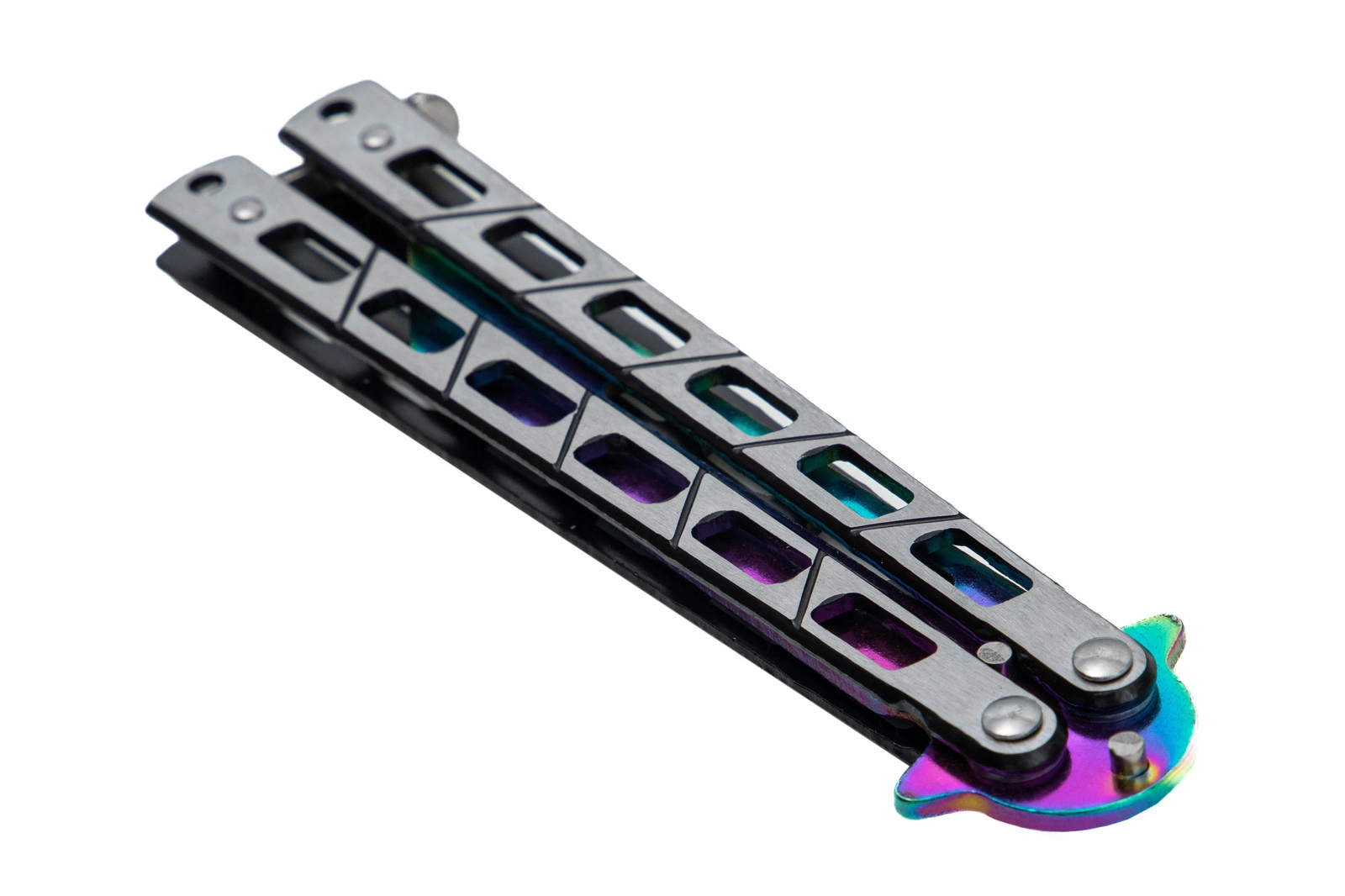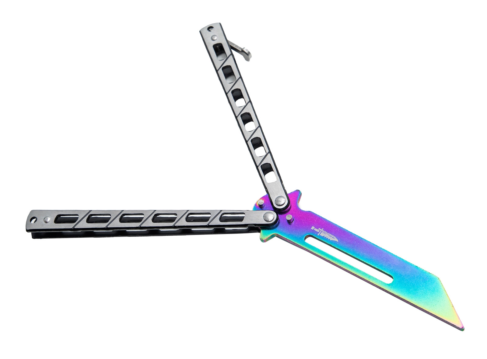 Nóż przeznaczony jest do treningu, ćwiczeń oraz wykonywania trików. Stępione ostrze zapobiega zranieniu. Prosta i solidna konstrukcja noża zapewnia trwałość i wysoką jakość. Nóż posiada zapięcie blokujące oraz specjalnie perforowaną głownię poprawiającą stabilność i lekkość podczas wykonywania sztuczek