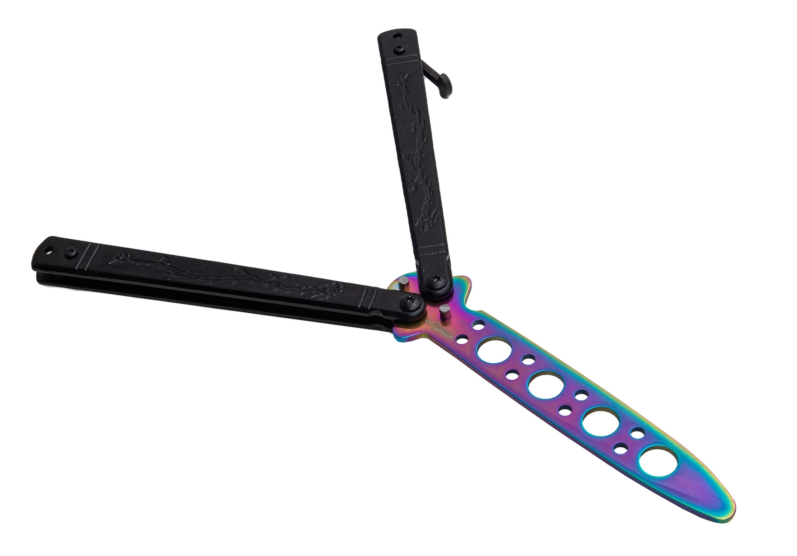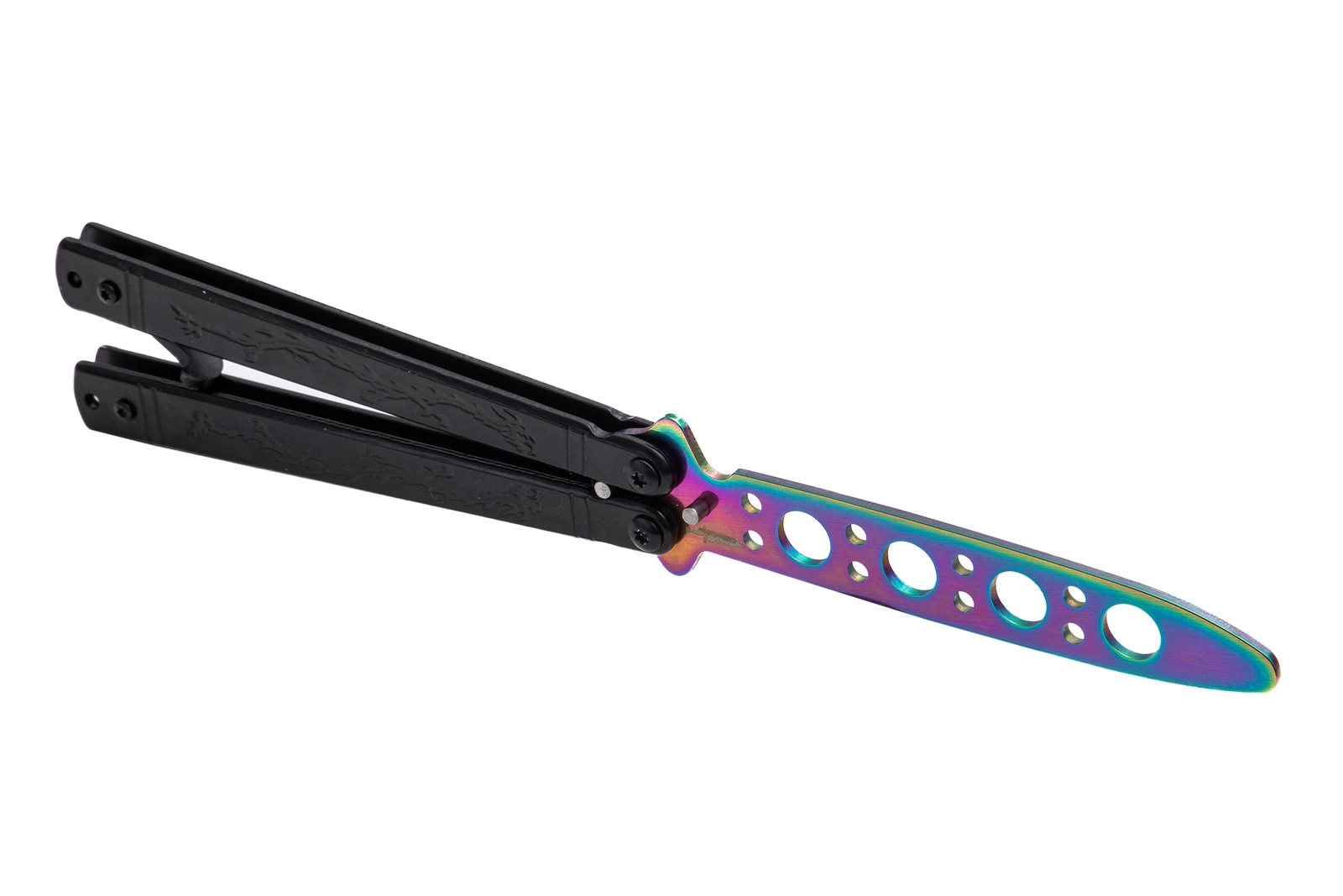 Nóż przeznaczony jest do treningu, ćwiczeń oraz wykonywania trików. Stępione ostrze zapobiega zranieniu. Prosta i solidna konstrukcja noża zapewnia trwałość i wysoką jakość. Nóż posiada zapięcie blokujące oraz specjalnie perforowaną głownię poprawiającą stabilność i lekkość podczas wykonywania sztuczek