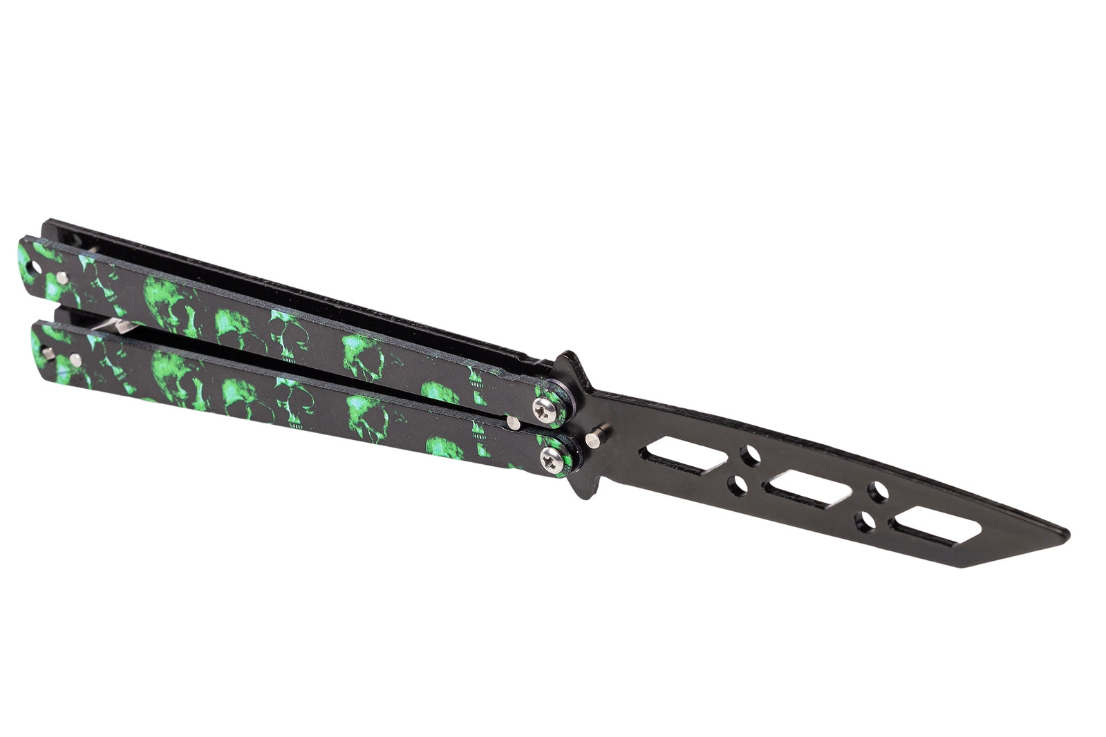 Nóż przeznaczony jest do treningu, ćwiczeń oraz wykonywania trików. Stępione ostrze zapobiega zranieniu. Prosta i solidna konstrukcja noża zapewnia trwałość i wysoką jakość. Nóż posiada zapięcie blokujące oraz specjalnie perforowaną głownię poprawiającą stabilność i lekkość podczas wykonywania sztuczek