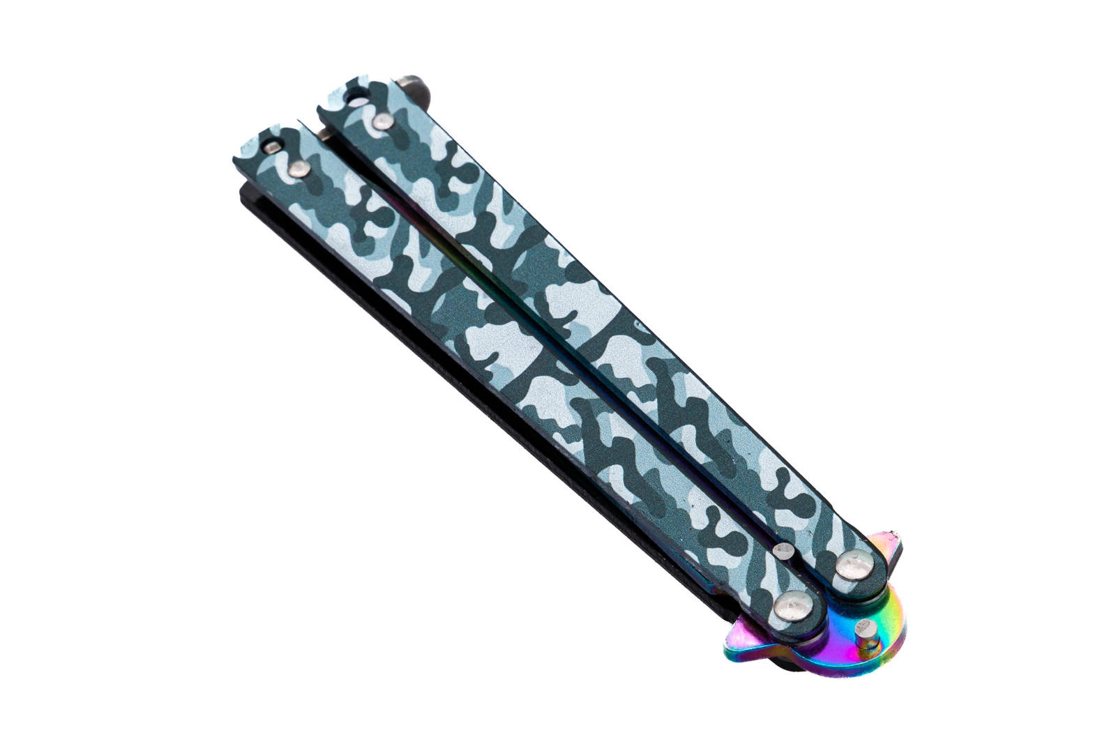 Nóż przeznaczony jest do treningu, ćwiczeń oraz wykonywania trików. Stępione ostrze zapobiega zranieniu. Prosta i solidna konstrukcja noża zapewnia trwałość i wysoką jakość. Nóż posiada zapięcie blokujące oraz specjalnie perforowaną głownię poprawiającą stabilność i lekkość podczas wykonywania sztuczek