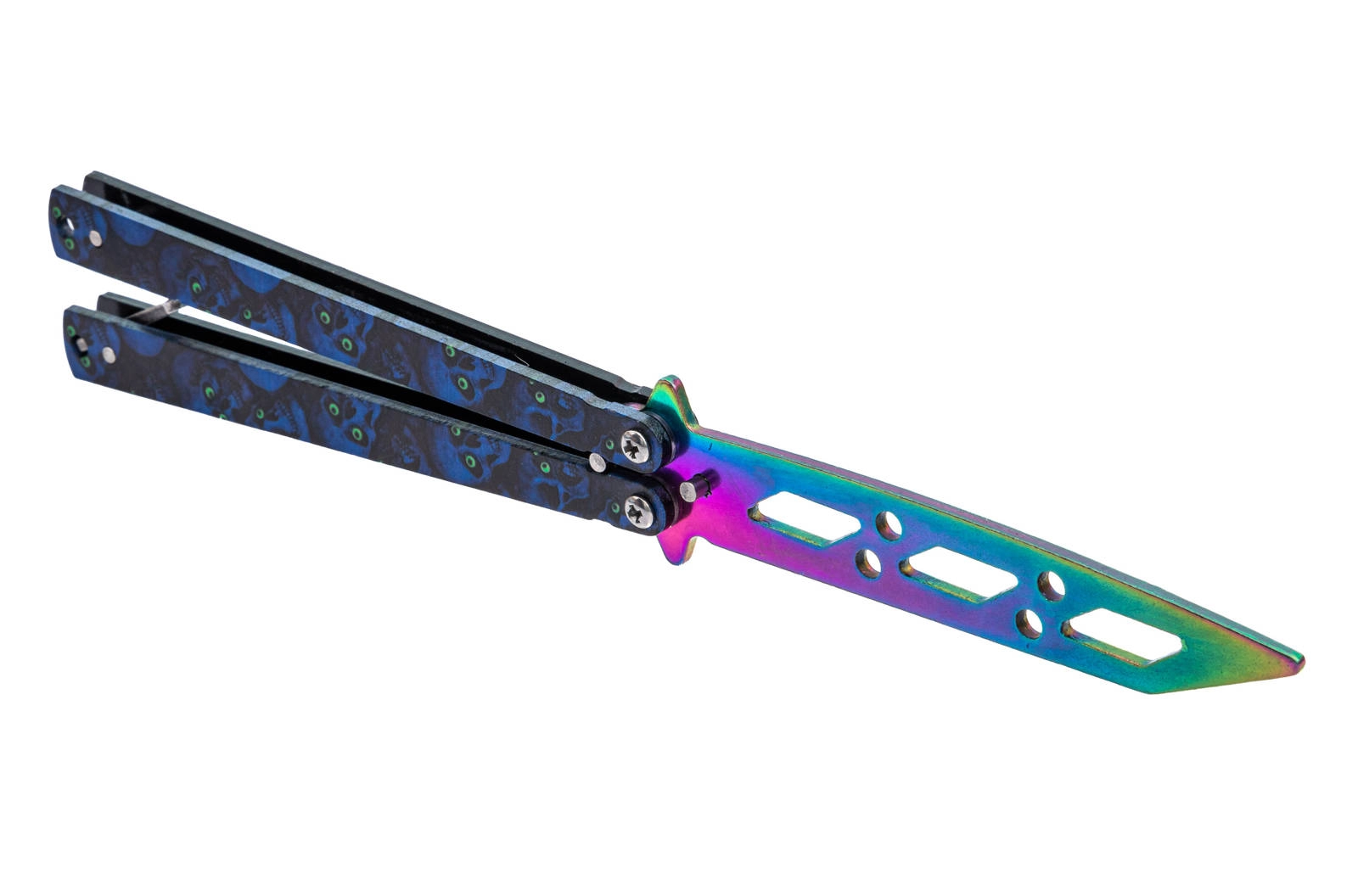 Nóż przeznaczony jest do treningu, ćwiczeń oraz wykonywania trików. Stępione ostrze zapobiega zranieniu. Prosta i solidna konstrukcja noża zapewnia trwałość i wysoką jakość. Nóż posiada zapięcie blokujące oraz specjalnie perforowaną głownię poprawiającą stabilność i lekkość podczas wykonywania sztuczek
