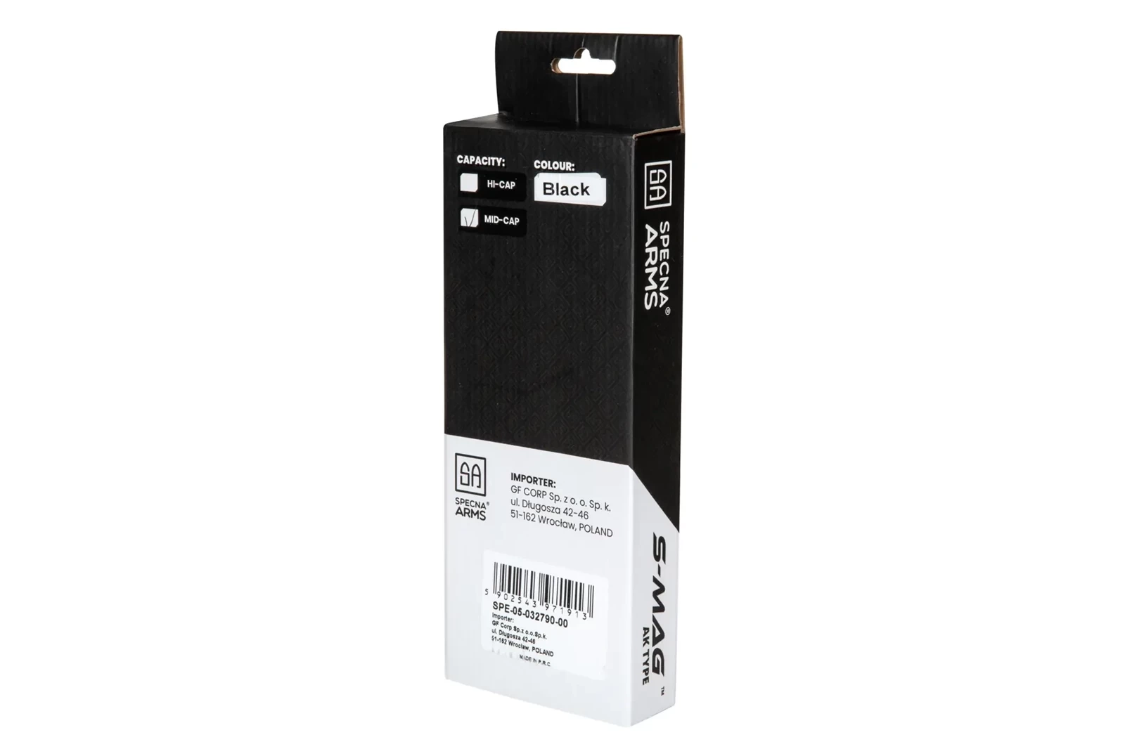 Specna Arms prezentuje polimerowe magazynki S-Mag. Charakteryzuje je zwarta, wytrzymała konstrukcja, smukły design. Uwagę zwraca charakterystyczna faktura złożona z logotypów Specna Arms. Magazynek wykonano z wytrzymałego tworzywa, mieści w sobie 175 kulek. Wyjątkowa konstrukcja sprawia że replika pasuje do większości replik dostępnych na rynku i idealnie pasuje do różnej maści ładownic taktycznych. S-mag zapewnia bezproblemowe podawanie kulek, nawet przy wysokim ROF.