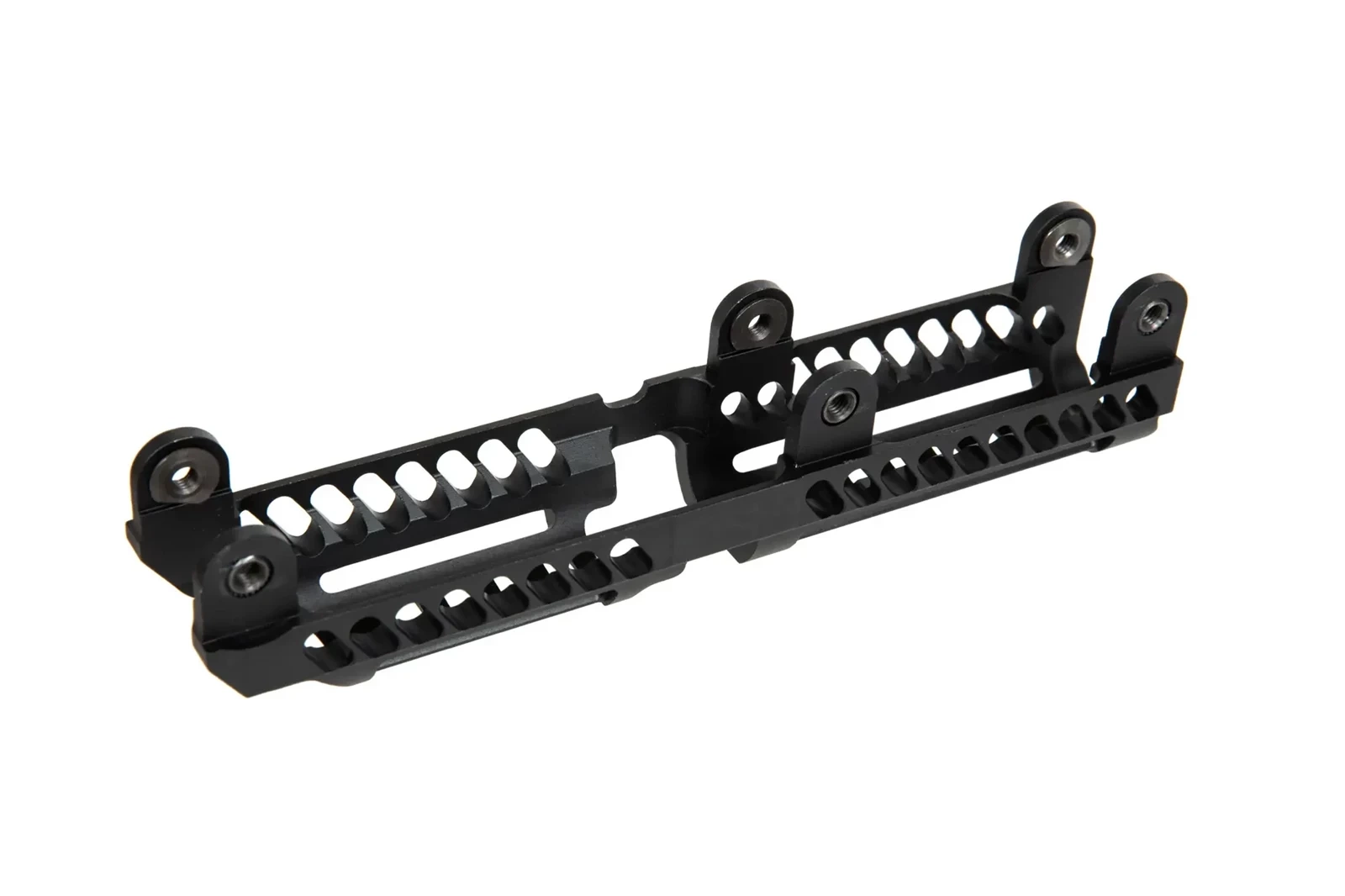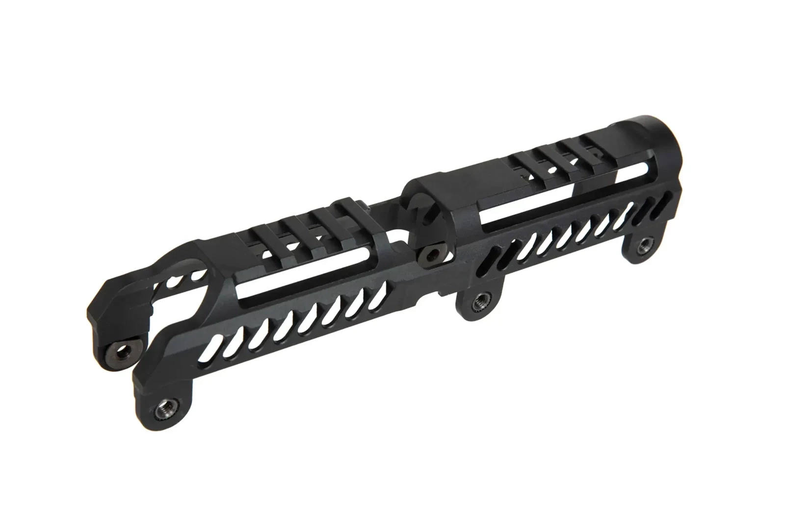 Aluminiowa nakładka rury gazowej zaopatrzona w dwa odcinki 35mm szyn RIS, przeznaczona do montażu na łożu B-30 lub B-30U. B-31N jest lżejszą i niskoprofilową wersją nakładki B-30. W przeciwieństwie do swojej poprzedniczki, B-31N można wygodnie objąć całą dłonią.