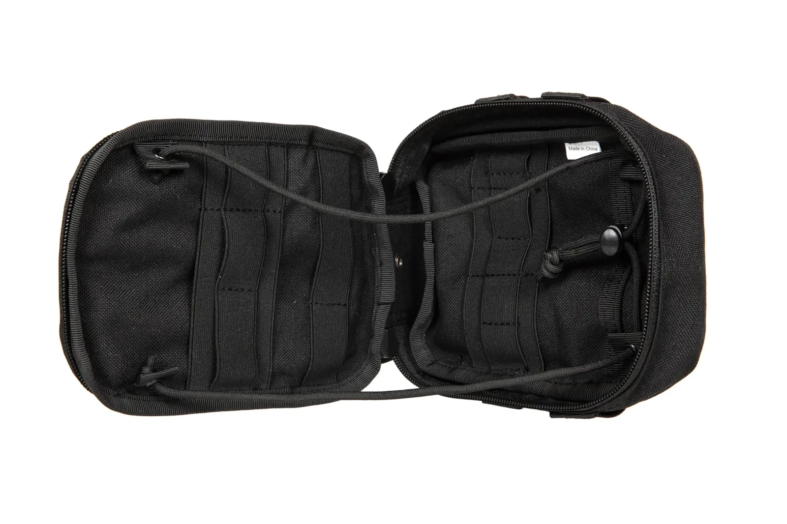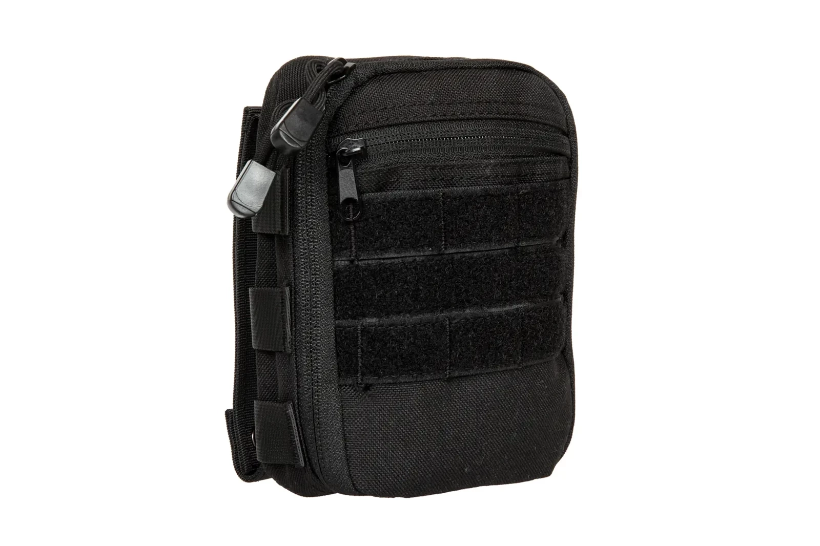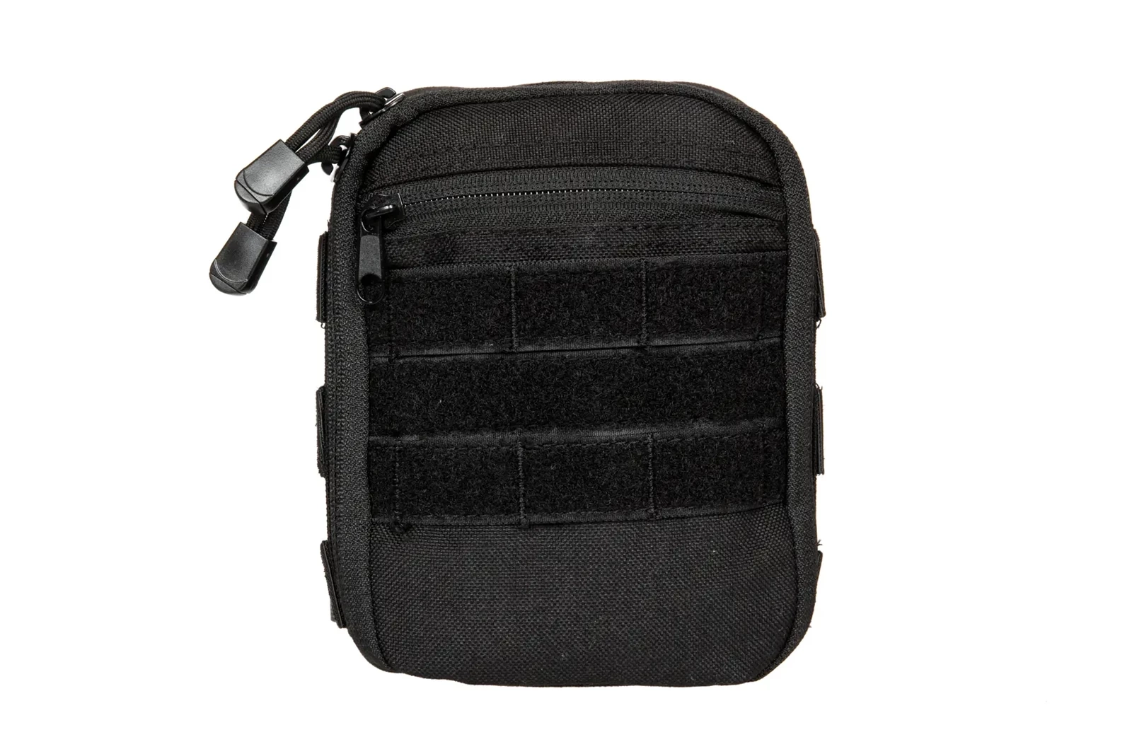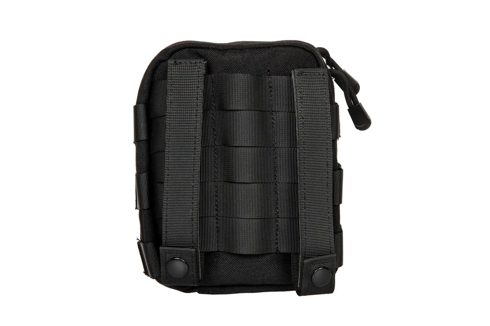 -Trzy paski molle obszyte rzepem, z przodu kieszeni mogą służyć zarówno do zaczepienia dodatkowych akcesoriów jak i panel na naszywki