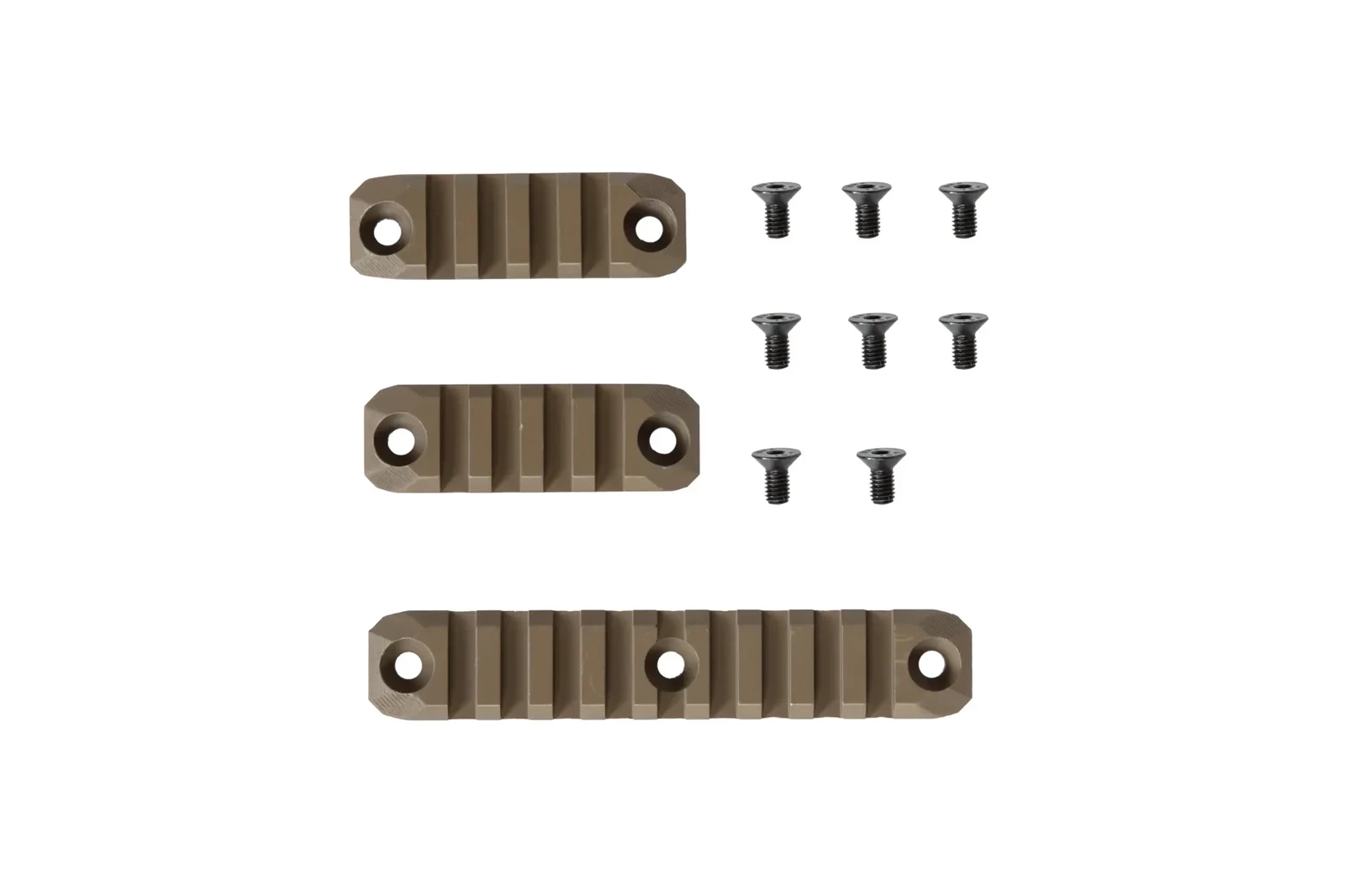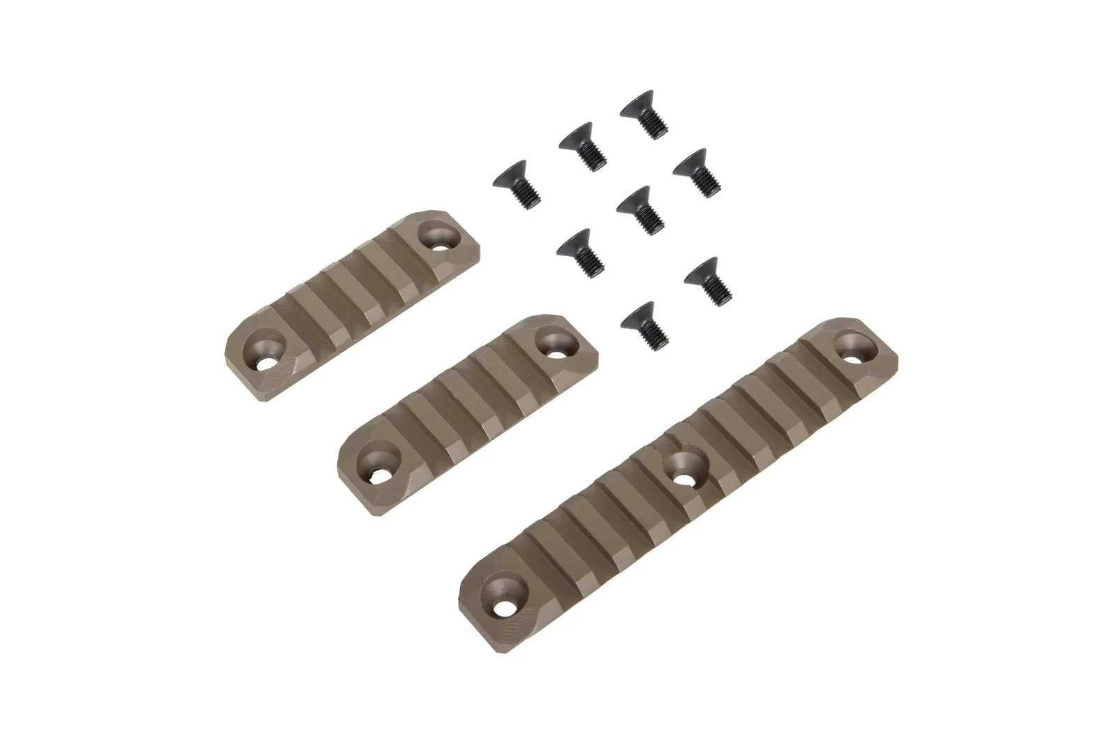Zestaw trzech metalowych szyn, dedykowanych pod system montażowy konwersji standardu RAHG. Pasuje np. do modeli Specna Arms H07, H08, H09.