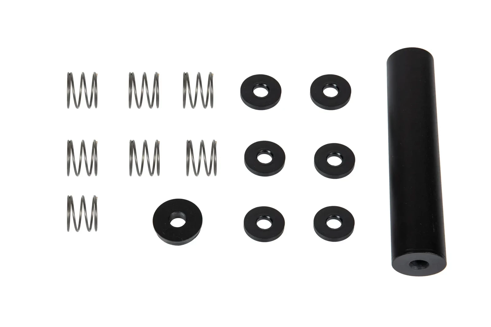 Wykonany z wytrzymałego Aluminium klasy PA6 tłumik dźwięku z grawerem, wersja PRO w porównaniu do standardowej edycji posiada wypełnienie z gąbki.